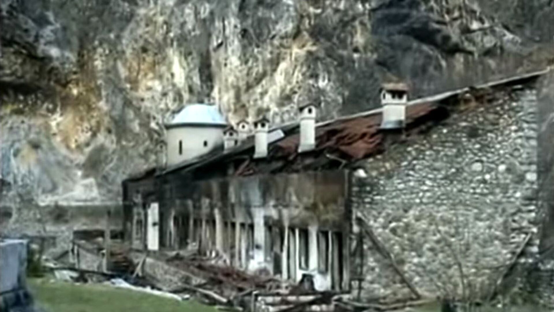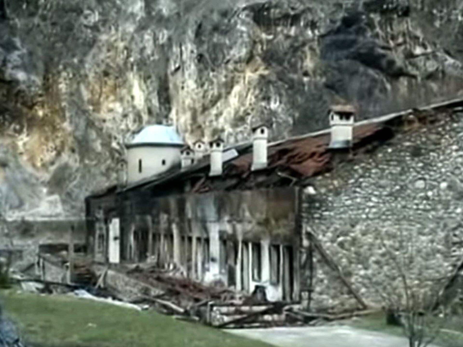 Говорећи то, млади Француз ме пропусти у пролаз манастирске капије. Тешка дрвена крила била су стргнута са шарки. Још увек је излазио дим из разбијених прозора конака, припијеног уз литицу у дубини манастирског дворишта.