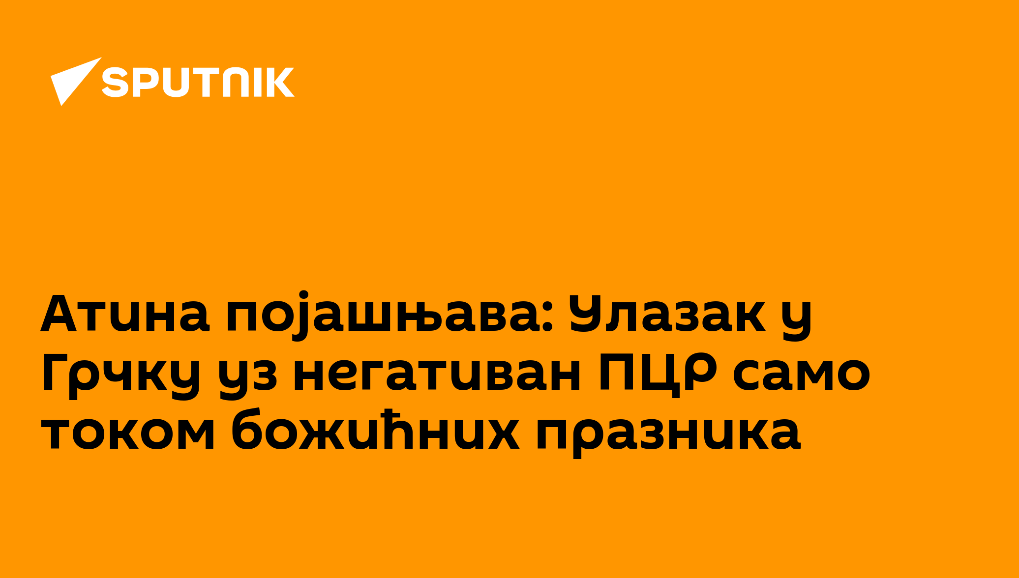 Одлука Грчке да сви путници који желе да уђу у ту земљу морају да имају негативан ПЦР тест не старији од 48 сати, биће привремена и важиће само током божићних... 16.12.2021, Sputnik Србија