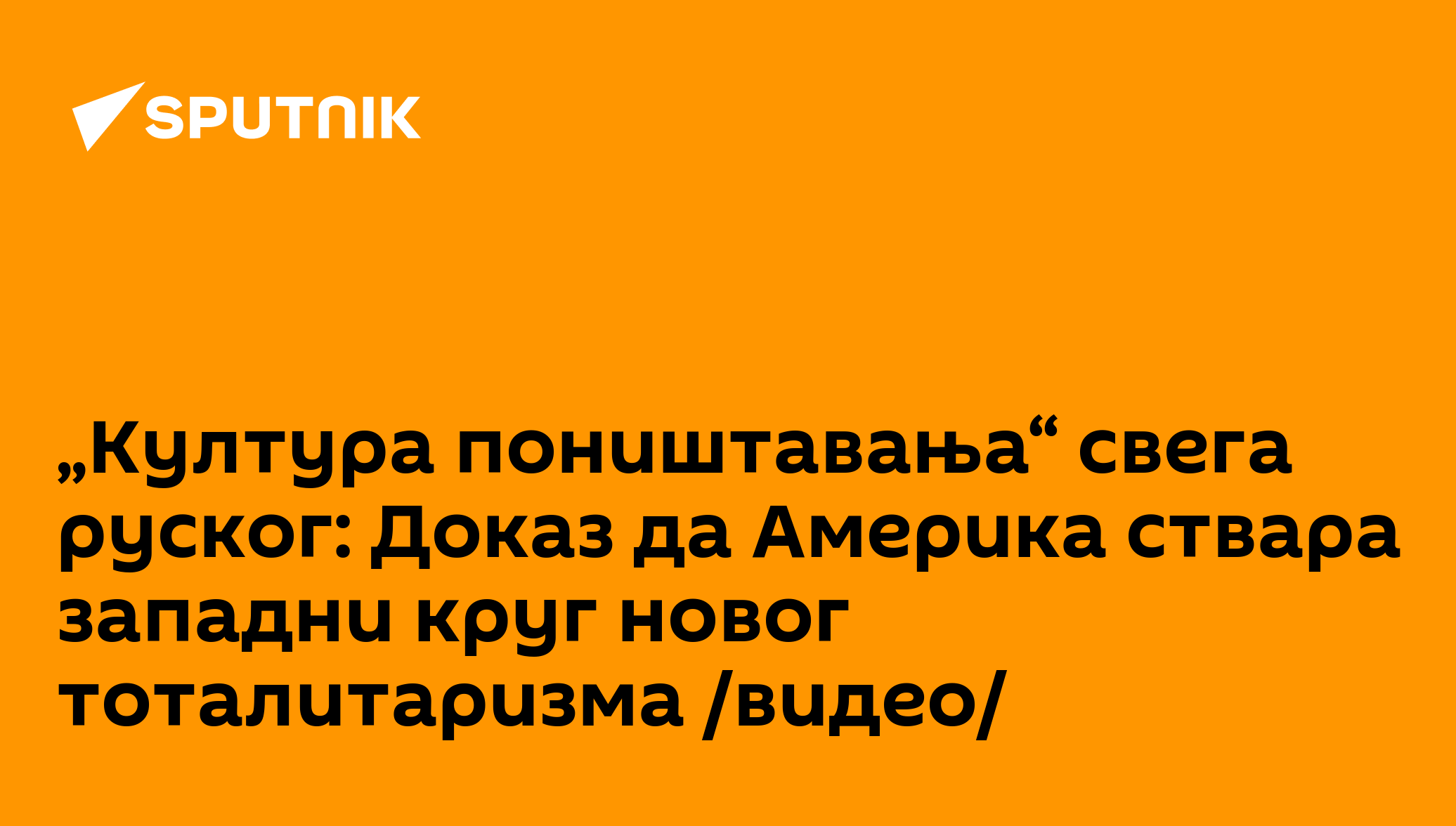Због учесталих хакерских напада и ометања сајта Спутњик Србија и наших канала на Фејсбуку и Јутјубу, све вести пратите и на каналу Спутњик Србија на Телеграму, који нико не може да угаси, а све видео садржаје на платформи „Одиси“ (odysee.com).Овако историчар и политички аналитичар Драгомир Анђелковић гледа на чињеницу да се на мети западних санкција које су Русији уведене због специјалне операције у Украјини нису нашли само руски политичари, привредни и финансијски сектор, већ и руски медији, спортисти, култура, одавно покојни писци и композитори, студенти и руски уметници који живе и раде у западним земљама, па чак и руско дрвеће и мачке.Западни круг новог тоталитаризмаПрема његовим речима, сличне ствари су се дешавале и раније, али овакав одијум Запада према свему што потиче из Русије сведочи о кулминацији слома западне демократије.„Нема ни унутрашње демократије нити спољног уважавања различитости без признавања да сви имају своје интересе и да се за њих боре. Запад, међутим, почиње да личи на Орвелову „1984“ у коме постоји култ мржње и где сви грађани свакога дана треба да издвоје два минута мржње усмерене према опонентима Великог брата, да би њега више волели у мери у којој мрзе друге. Тако и Америка сада тера и своје грађане и грађане света да мрзе Русију како би волели Америку са свим њеним манама. Дакле, та империја која полако пропада покушава и на тај начин да консолидује своју снагу“, објашњава гост „Спутњик интервјуа“.Та снага Америке је, сматра Анђелковић, све мања, али је и све агресивнија, па је отуда, како каже, и започела операција гушења руских медија, потпуног оцрњивања председника Владимира Путина и сатанизације целе Русије и руске нације.„Ми смо све то прошли 1999. године, али можда тада нисмо до краја научили лекцију јер смо мислили да смо ми погрешили, да нисмо схватили шта значи пад Берлинског зида. То је можда и тачно, али нисмо схватили и нешто друго - шта заиста значи тај неолиберални тоталитарни систем. Покојни академик Љубомир Тадић је то на време разумео и на то је указао још у јеку бомбардовања 1999. године, када је рекао да се свет суочио са три вида тоталитаризма – први је нацистичко-фашистички, други је бољшевички, а трећи је неолиберални. Време је показало да је, на жалост, био у праву“, оцењује историчар.Култура „црно-белог“Коментаришући забрану руским параолимпијцима да се такмиче и притиске на руске уметнике и спортисте који живе на Западу да се одреде према дешавањима у Украјини, Анђелковић каже да свуда у свету има искључивости, али да она нигде није на тај начин стављена на трон као у западном цивилизацијском кругу.„Западна црно-бела матрица гласи „или сте Бог или сте Ђаво“, нема средине, нема нијанси. Ту је и елемент историјски нагомилане русофобије јер је Русија највећа православна сила ван западног круга. Они дакле могу да толеришу силе које су им потчињене, али свака сила која је ван њиховог круга је осуђена на уништење. То ће се десити и са Кином јер је Русија данас „кинески зид“. Русија је зид који данас штити Кину, јер би они сутра на њу кренули још горе“, уверен је наш саговорник.Трећи елемент Запада који у свему овоме треба имати на уму је, каже историчар, специјални рат.„Запад полази од оне старе идеје „Умећа ратовања“ Сун Цуа где се, како би се непријатељ поразио, мора изазвати раздор и подела 