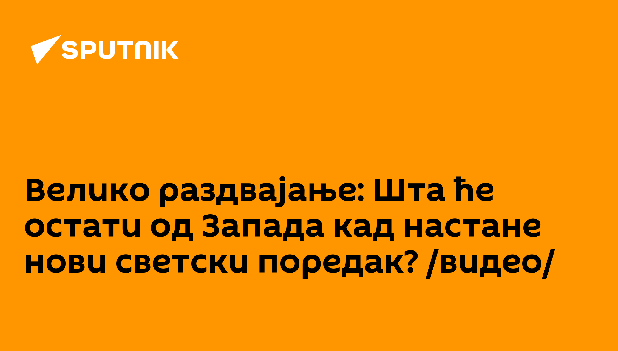 Велико раздвајање: Шта ће остати од Запада кад настане нови светски поредак? /видео/