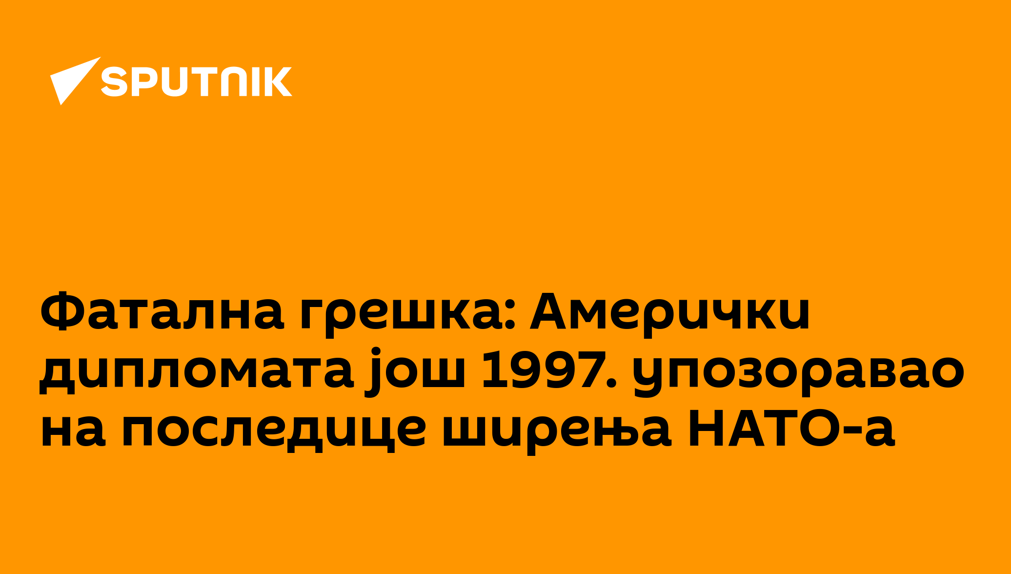 Фатална грешка: Амерички дипломата још 1997. упозоравао на последице ширења НАТО-а