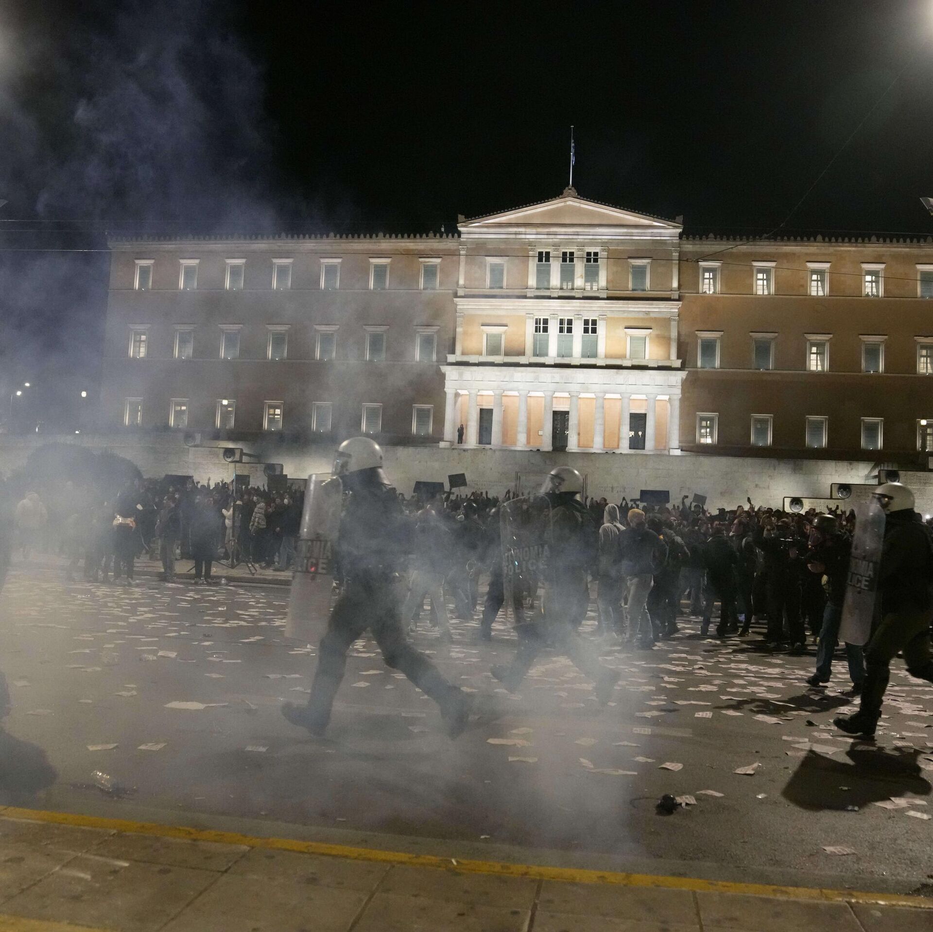 Полиција се сукобила са демонстрантима у центру Атине током протеста поводом друге годишњице железничке несреће у којој је погинуло 57 особа, махом студената. 05.03.2025, Sputnik Србија