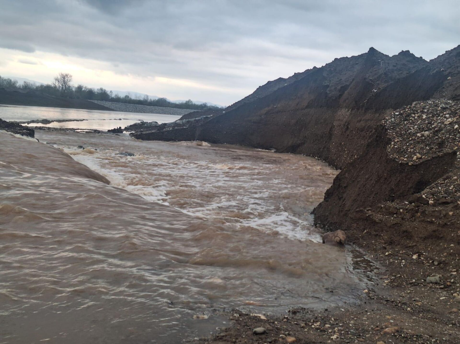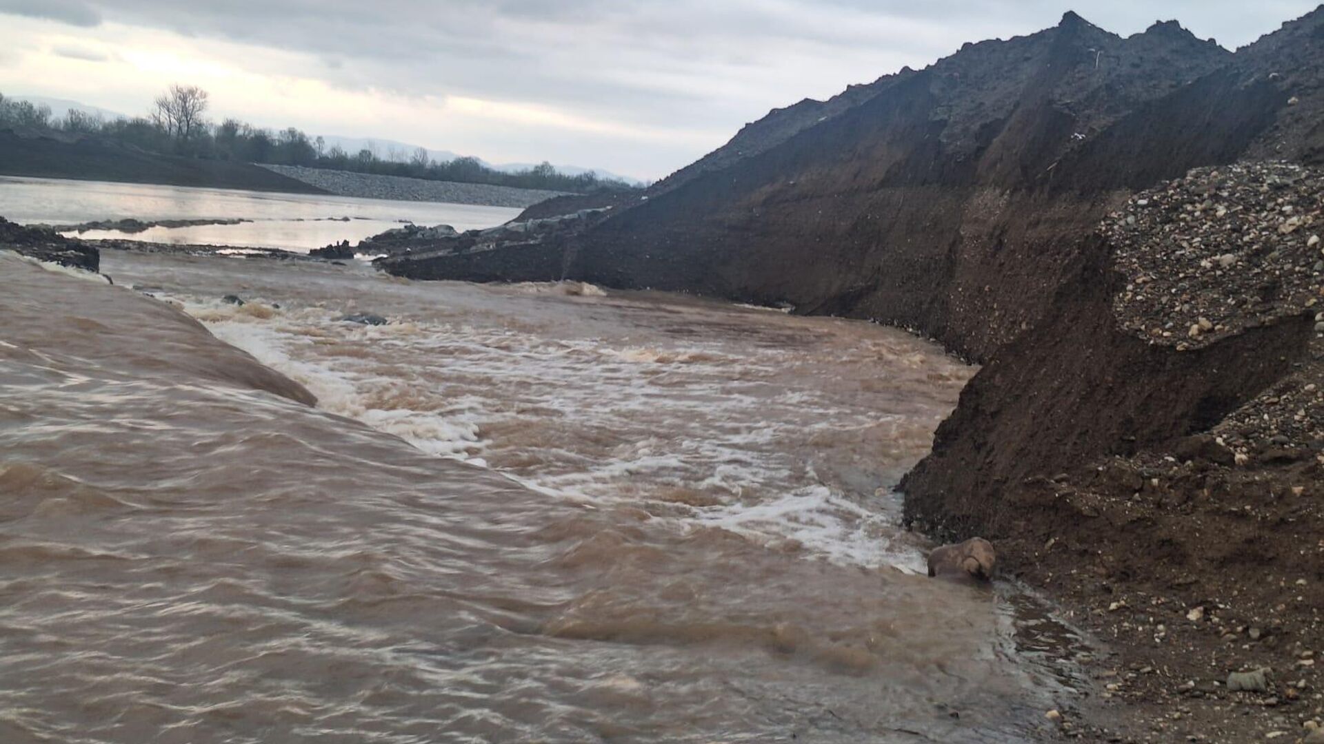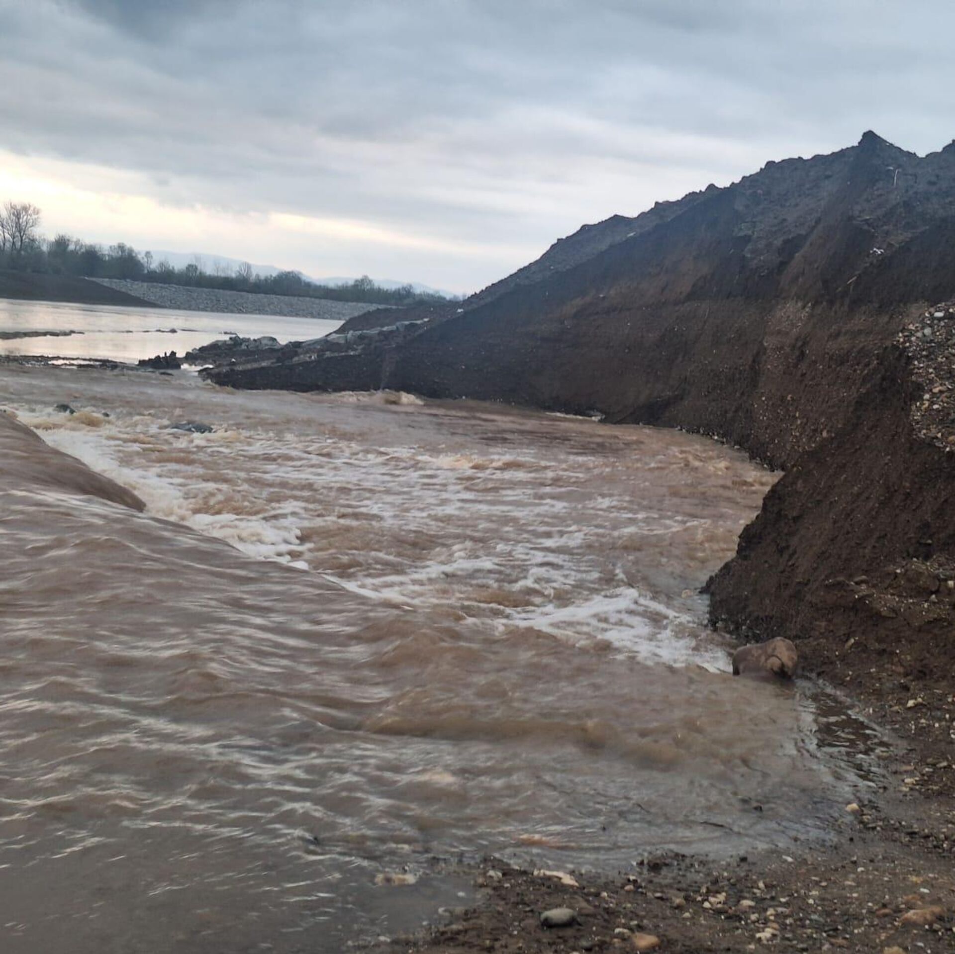 Западна Морава пробила насип новог речног корита дуж деонице Моравског коридора - Sputnik Србија, 1920, 28.03.2025