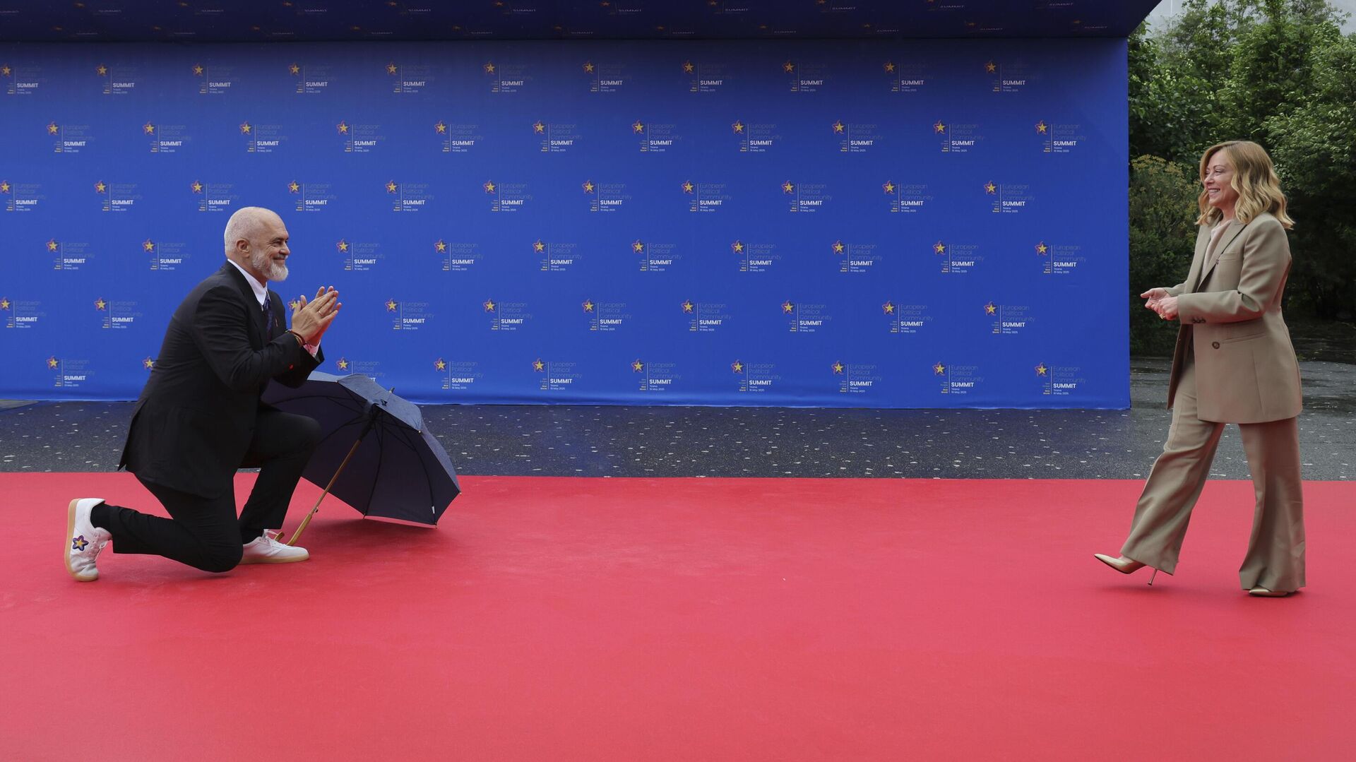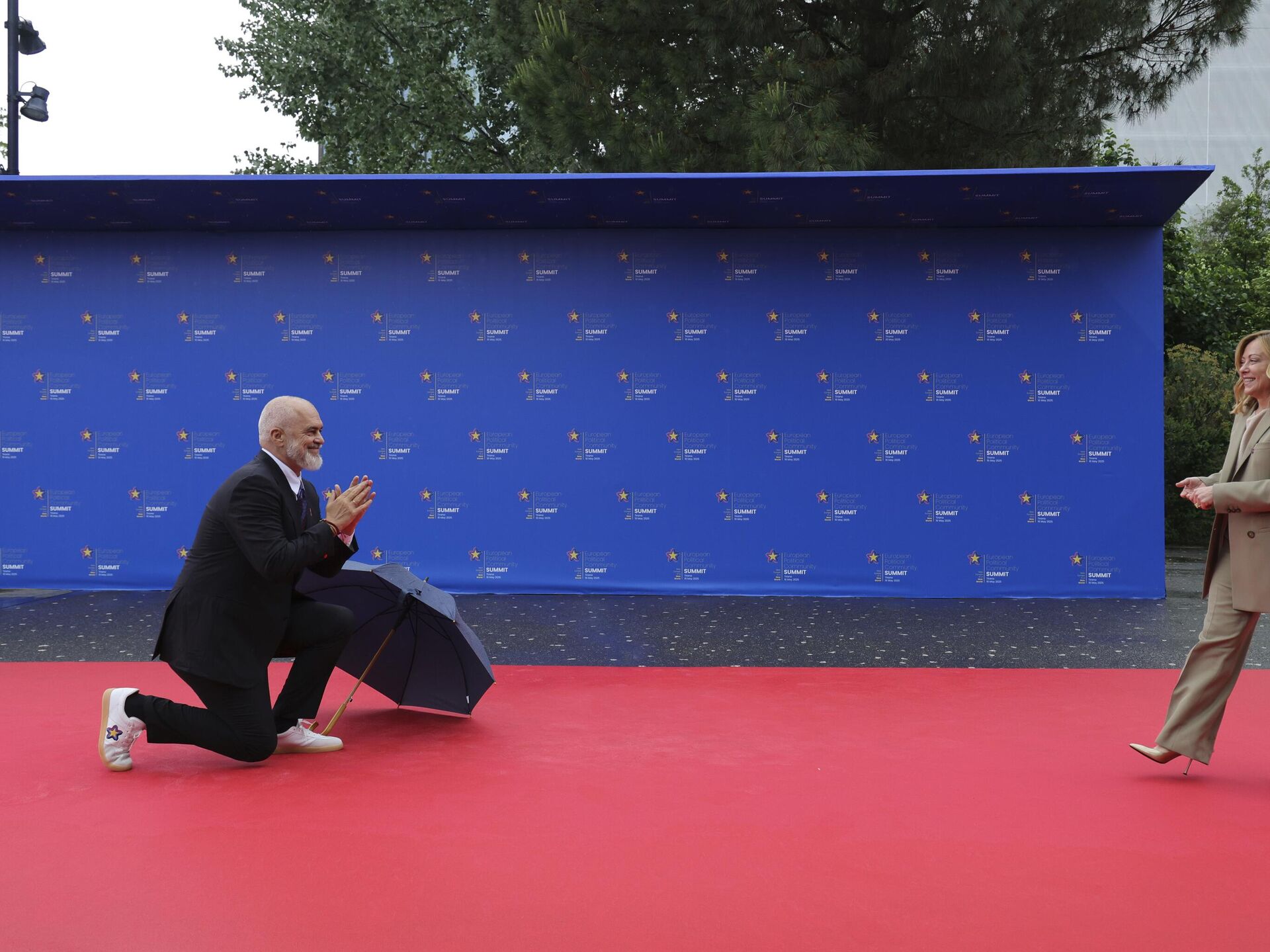У Тирани се одржава Самит Европске политичке заједнице, премијер Албаније Еди Рама дочекао је госте на црвеном тепиху, а пред италијском премијерком Ђорђом Мелони је клекао на колена.