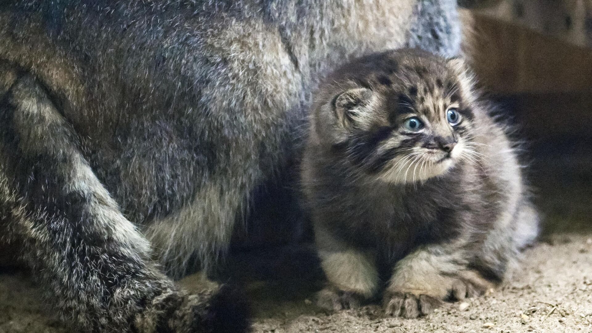 Манул Миа и њено маче у Новосибирском зоолошком врту .