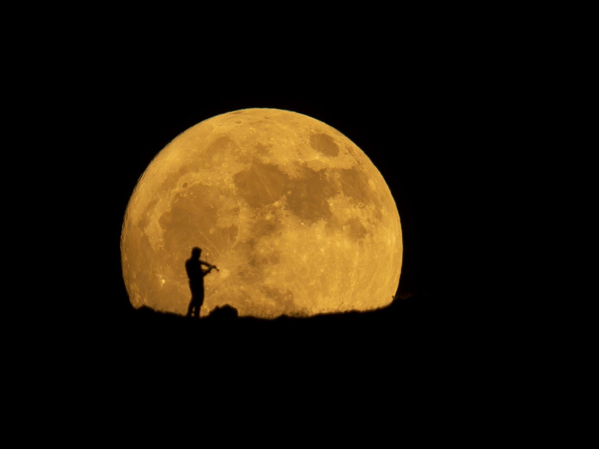 Љубитељи астрономије имали су прилику да уживају у призору такозваног пуног јагодичастог Месеца или пуног Месеца јагоде. У призору је уживао и виолиниста у Ираку.