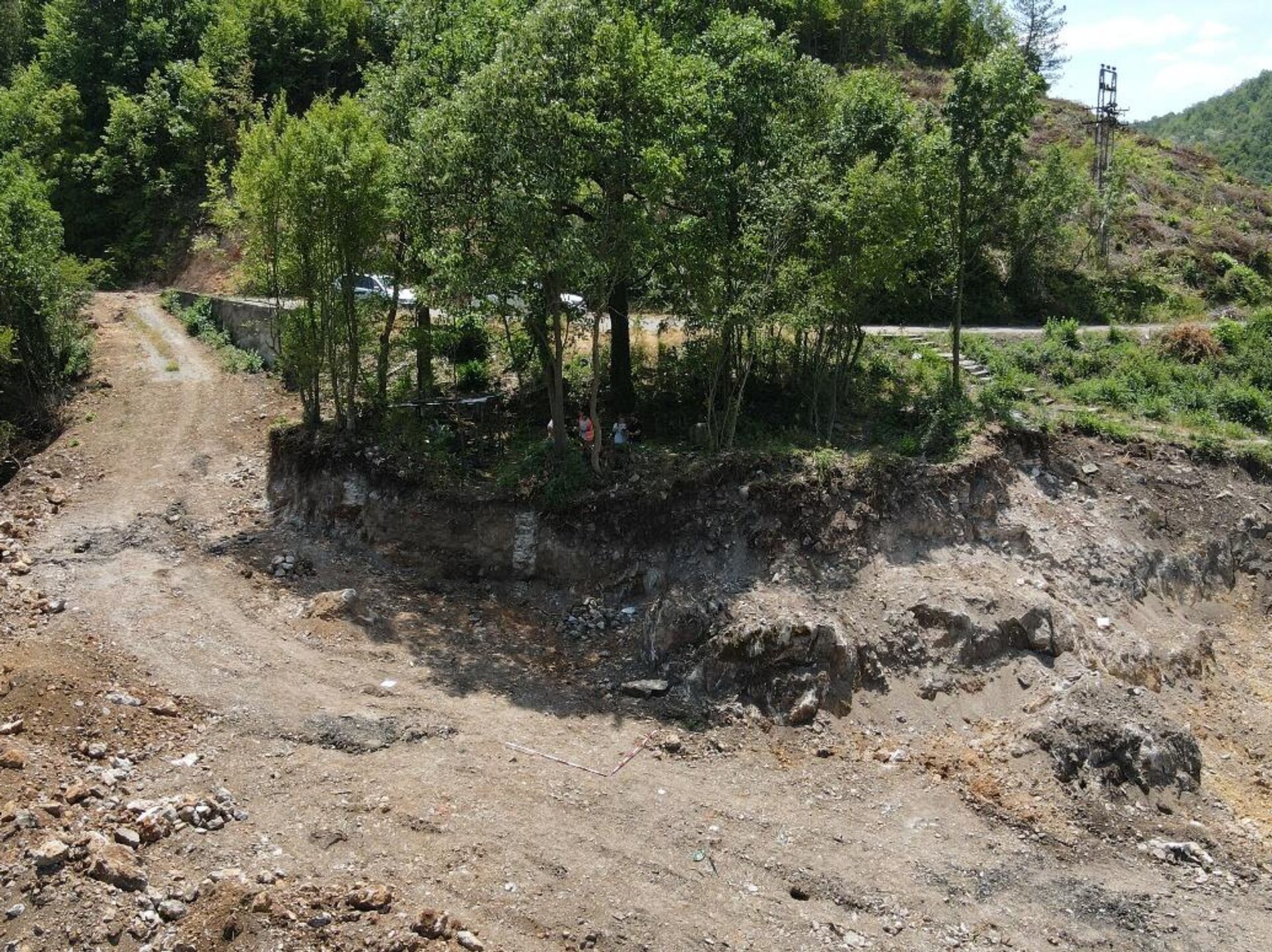 Разрушени археолошки налази црквеног објекта, јасно уочљиви остаци зидова од камена и опека