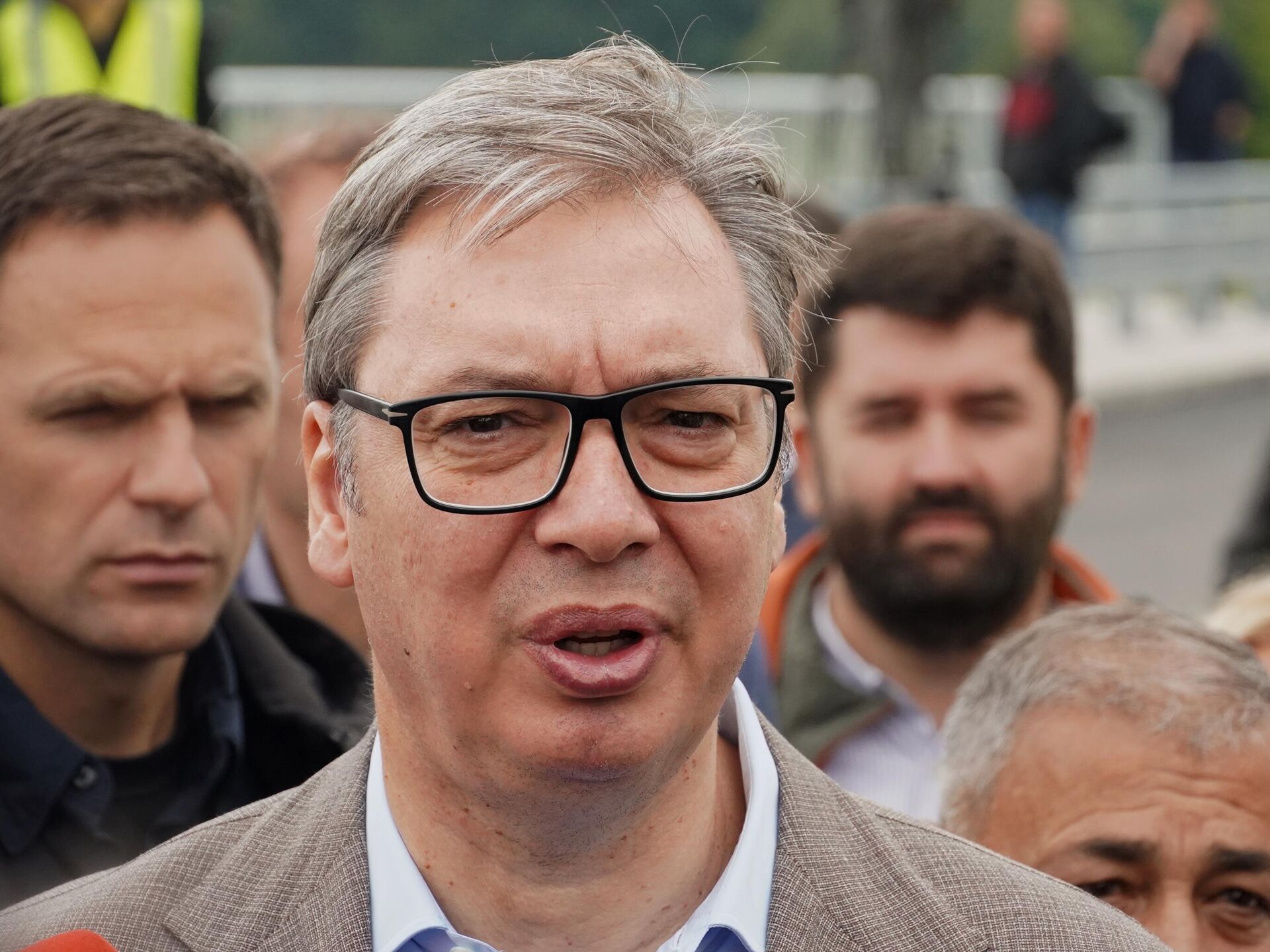 "То вам је тај део увезане, да не кажем мафијашке структуре у тужилаштву. Знали су да морају да заврше у петак, да би имали свог судију који ће да одреди притвор. Морали су то тако да заврше да би имали свог судију за претходни поступак који ће да одреди притвор, јер после девет месеци нико жив не би одредио притвор. Али то су све те комбинације које раде, зато је био потребан тај потпис. Није он потписао него је неко други за њега то потписао, то вам говори само о журби и о томе како је то све несолидно рађено. Него данас им је дан за ту 'олују', ево чекам да видим како ће да им иде та 'олуја'", рекао је Вучић новинарима током обиласка радова на изградњи брзе саобраћајнице Слепчевић-Бадовинци.