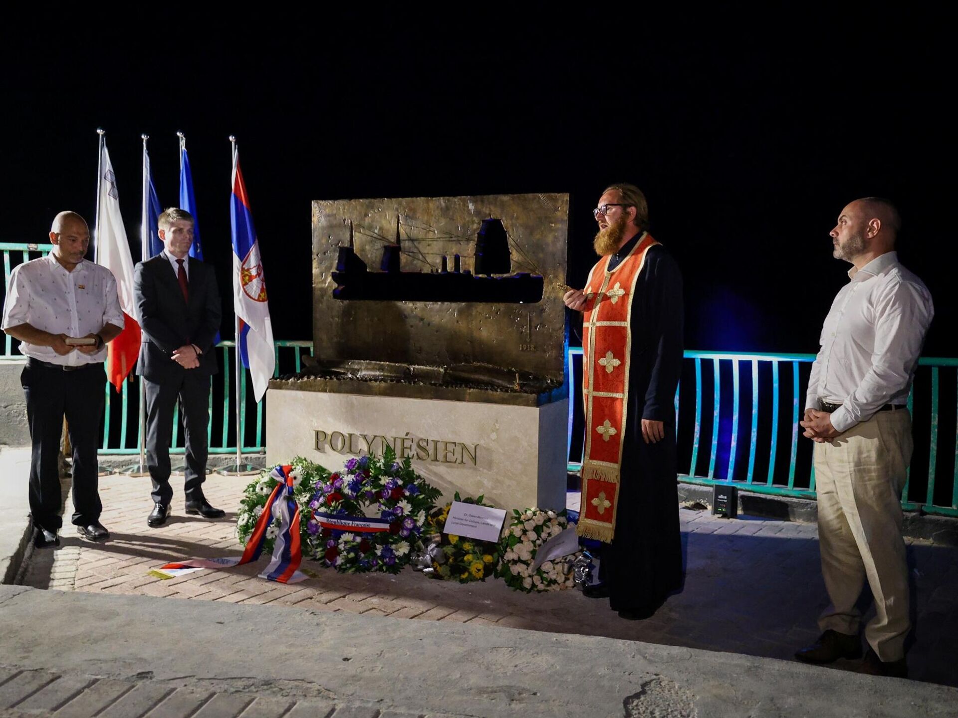 Директор Канцеларије за јавну и културну дипломатију Владе Републике Србије Арно Гујон открио је споменик посвећен трагичном бродолому српских војника на француском броду “Ле Поленизијан” у водама Малте током Првог светског рата.