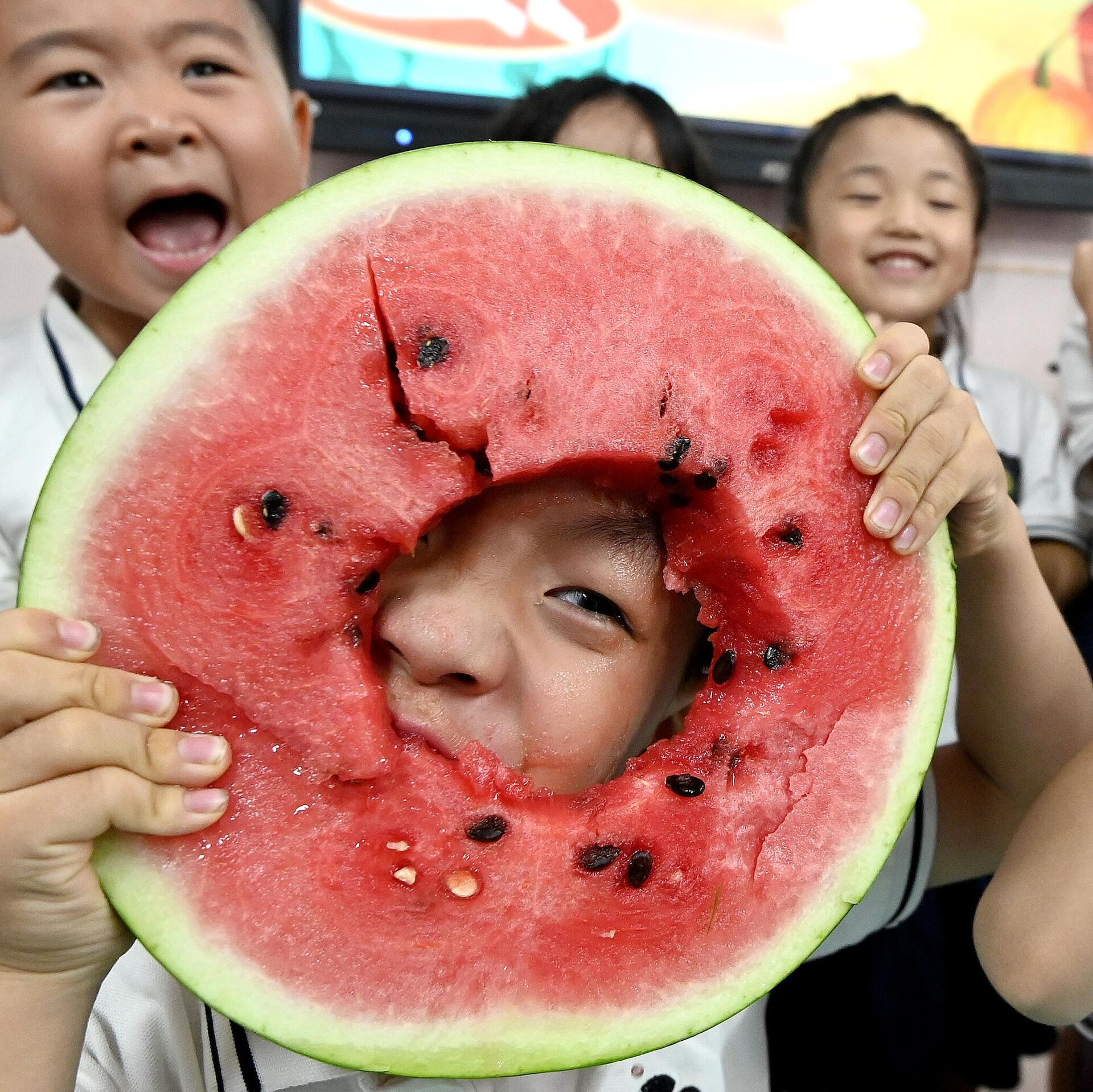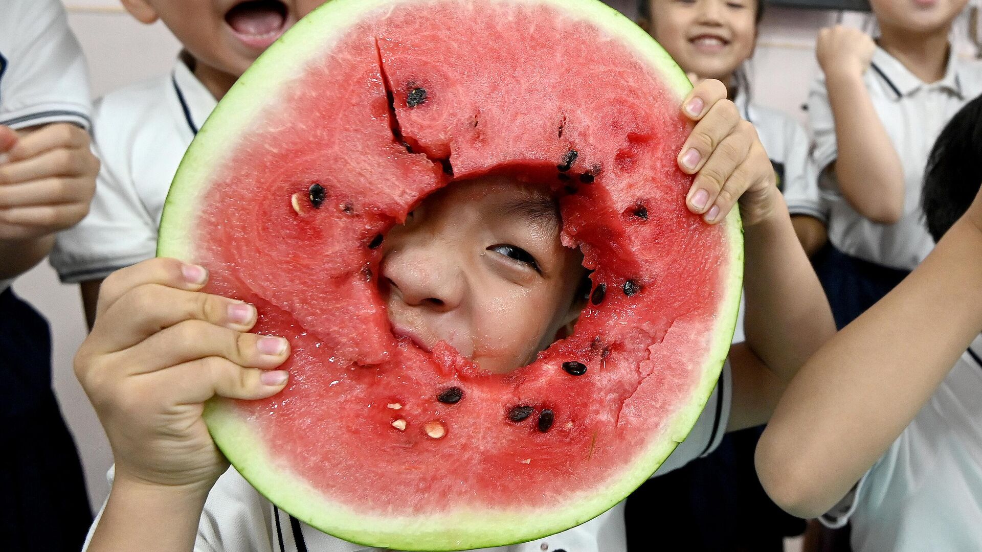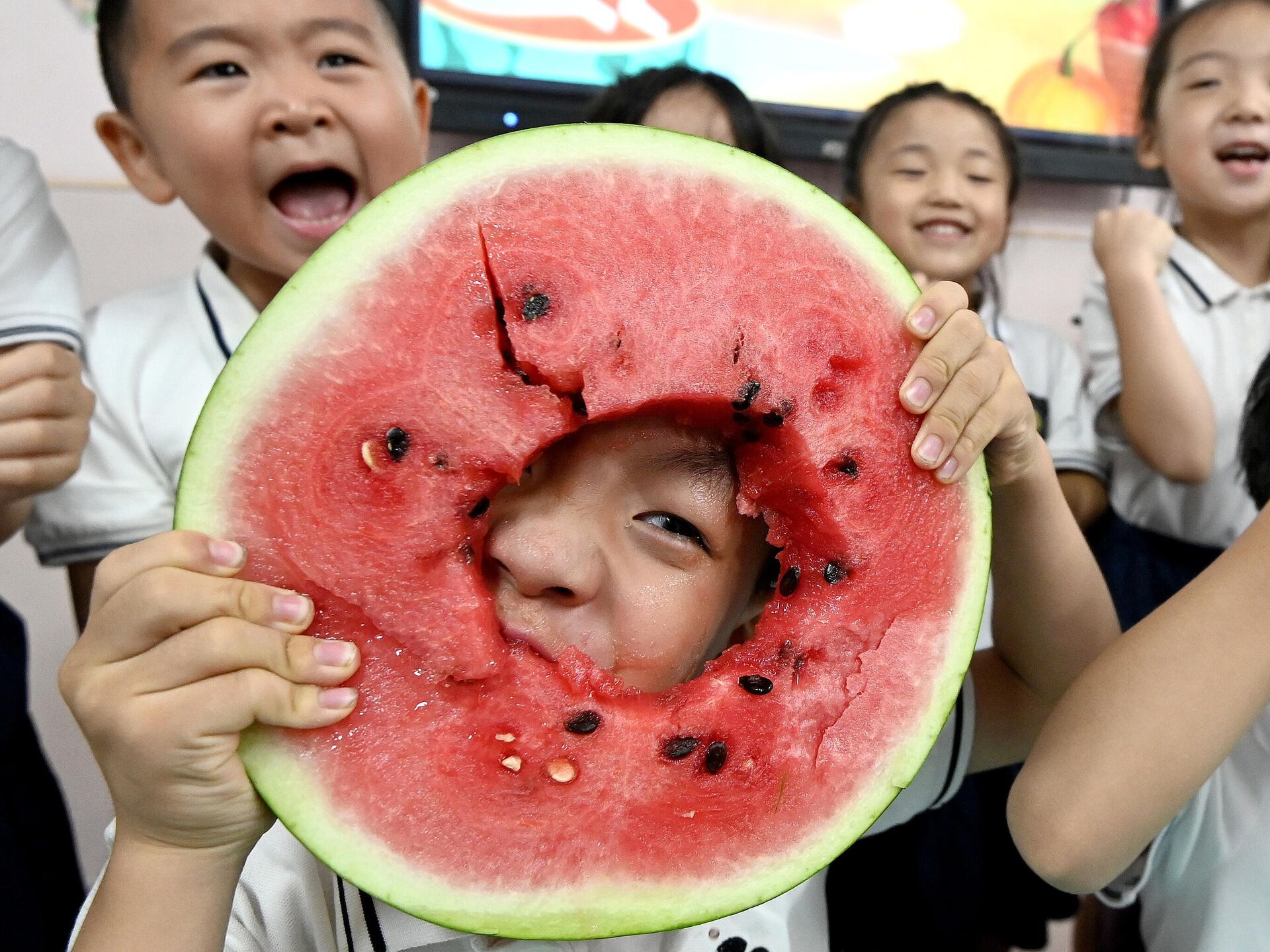 © Getty Images / CFOTO/Future Publishing Деца једу лубеницу у вртићу у Хандану, у северној кинеској провинцији Хебеј