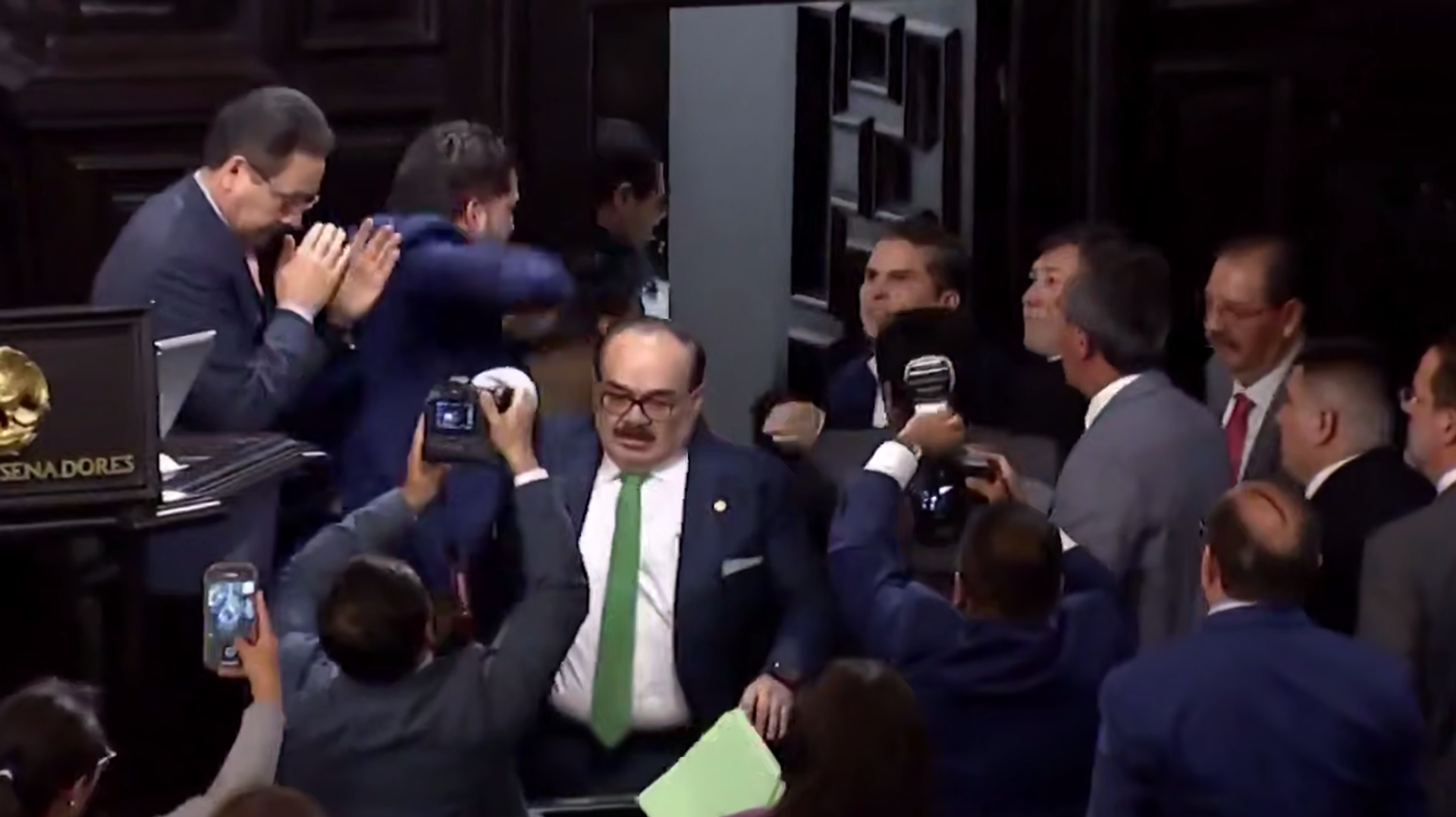 Лидер сената најавио је да ће у петак сазвати ванредну седницу и предложити искључење Морена и још тројице посланика ПРИ-а због овог инцидента.