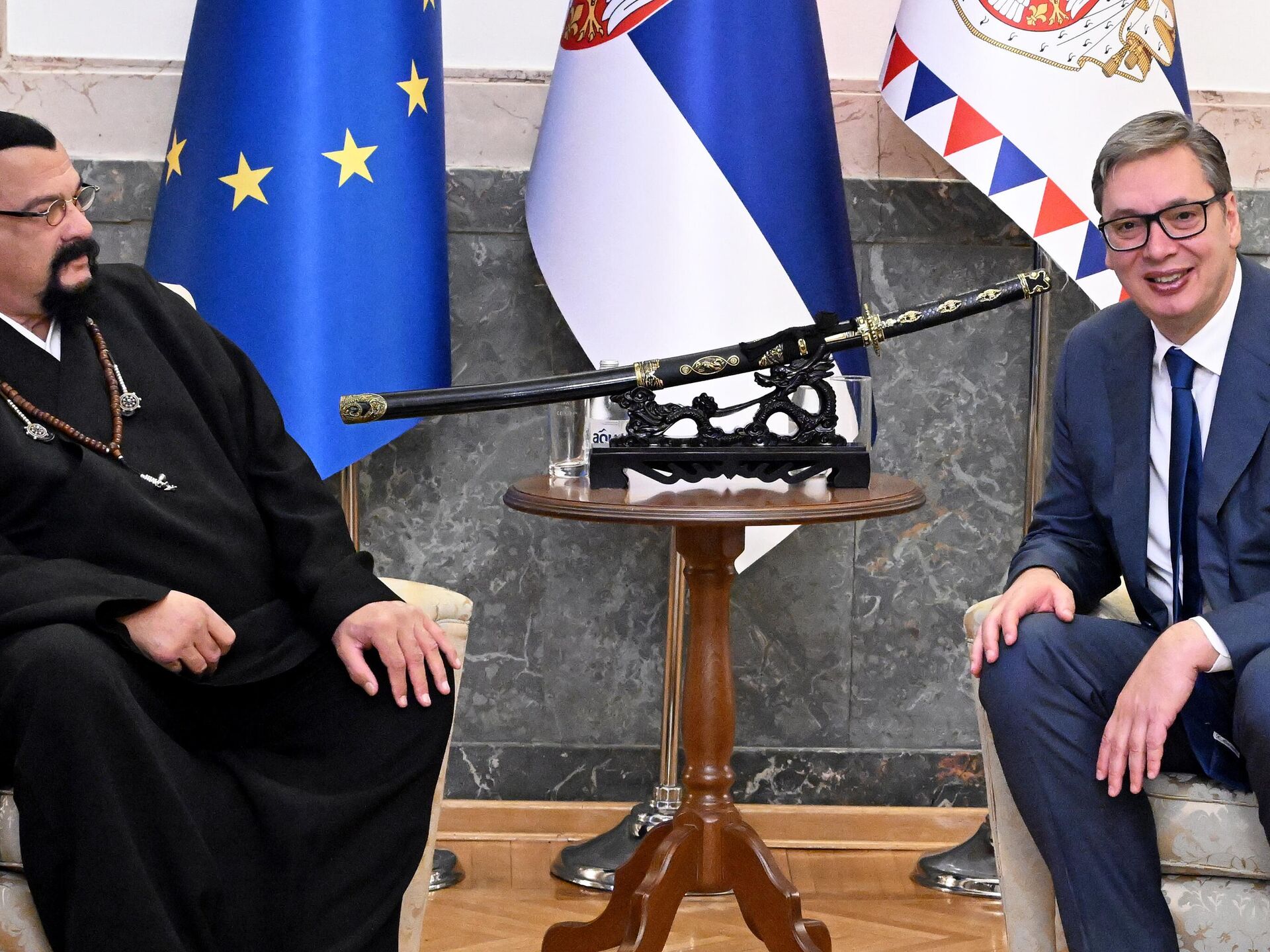 Стивен Сигал са сином код Вучића, повод - „Ред змаја“