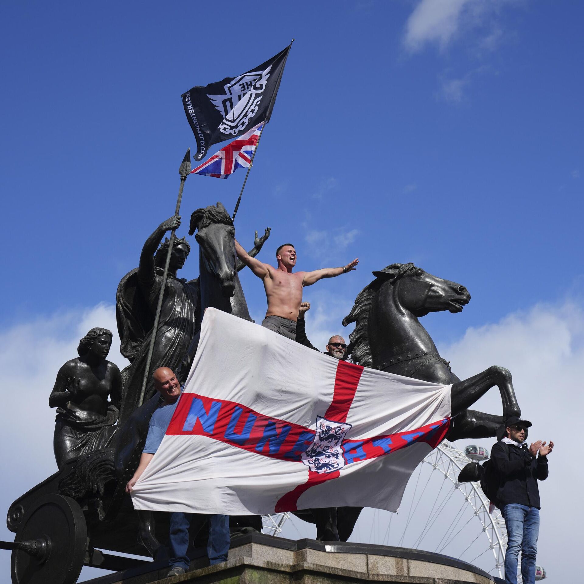 Лондонска полиција саопштила је синоћ да је ухапсила 25 особа на протесту „Ујединимо краљевство“ који је организовао активиста Томи Робинсон, док је 26 припадника снага безбедности повређено у сукобима са демонстрантима.