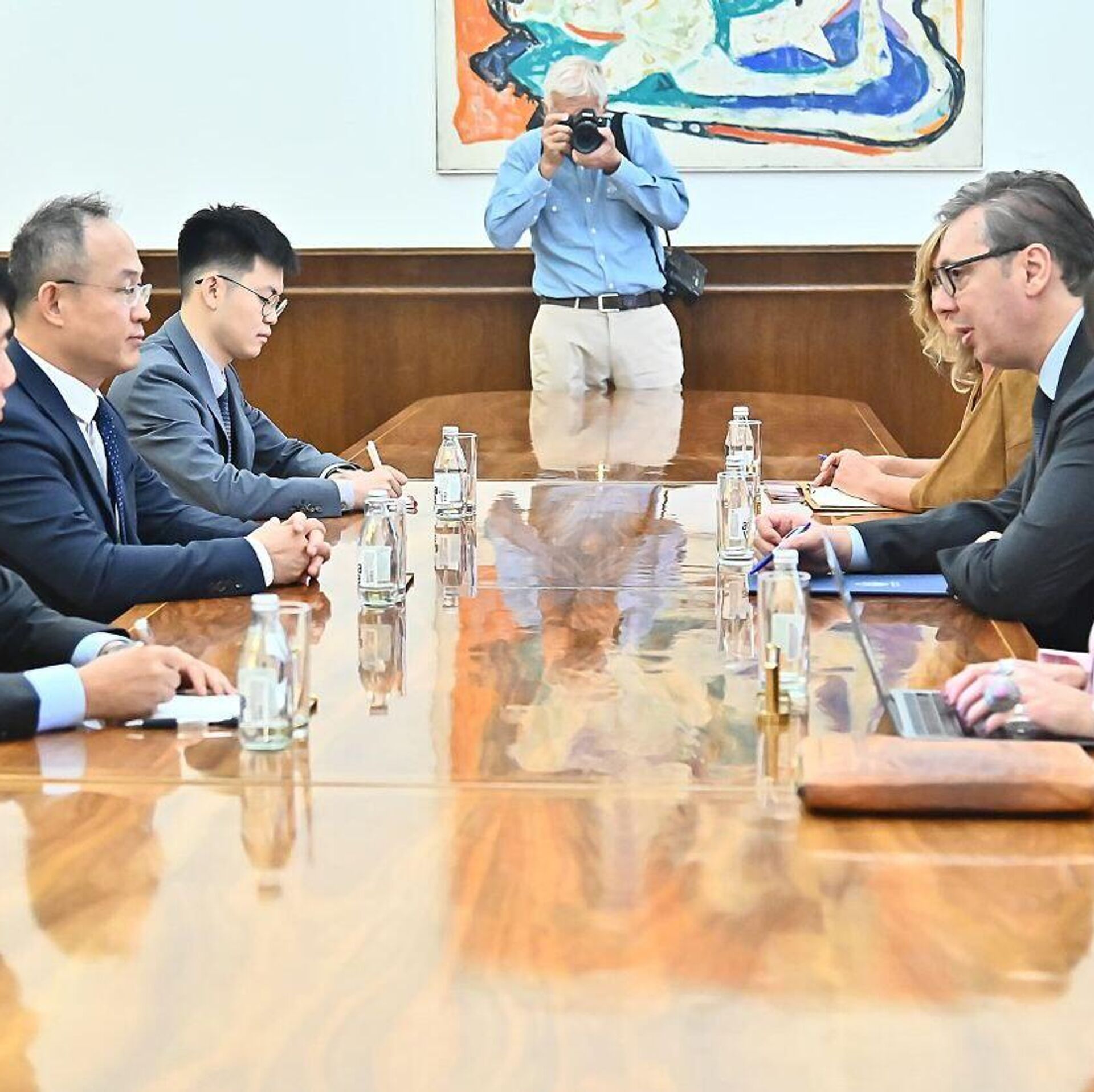 Како је нагласио, посебна тема били су резултати састанка са кинеским председником Си Ђинпингом са којим је разговарао о новим инвестицијама, додатним пројектима у областима инфраструктуре, енергетике, примене најновијих технологија у бројним гранама индустрије, као и о наставку сарадње и међусобне подршке на међународном плану.