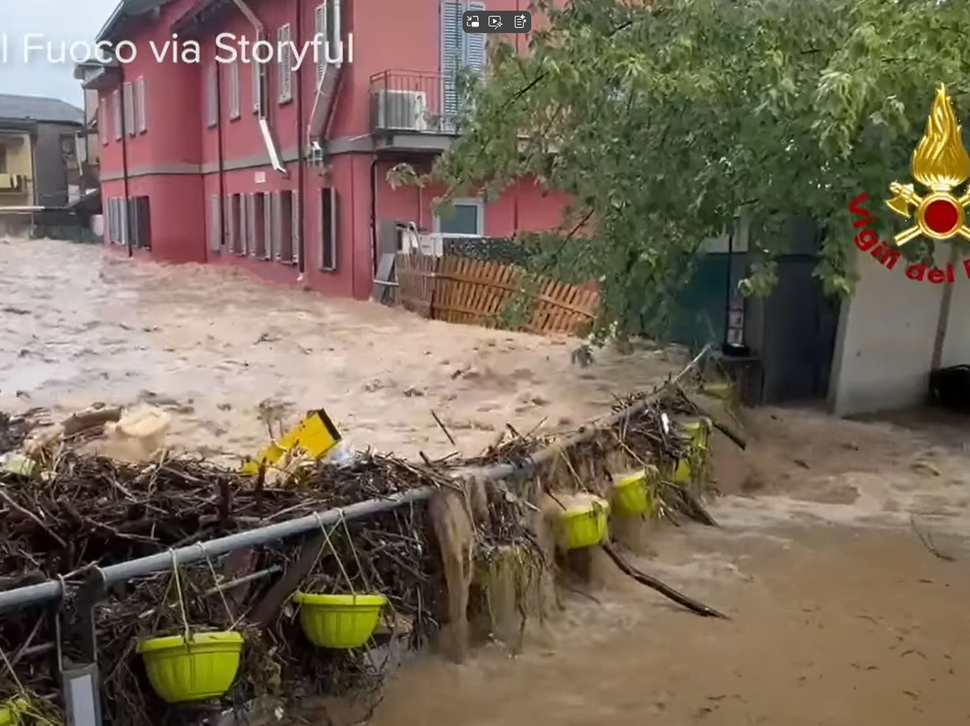 У месту Монтероне, на Искији, вода је поплавила улице, а две паркиране патроле карабињера повукла је бујица воде и блата, одневши их неколико метара даље.
