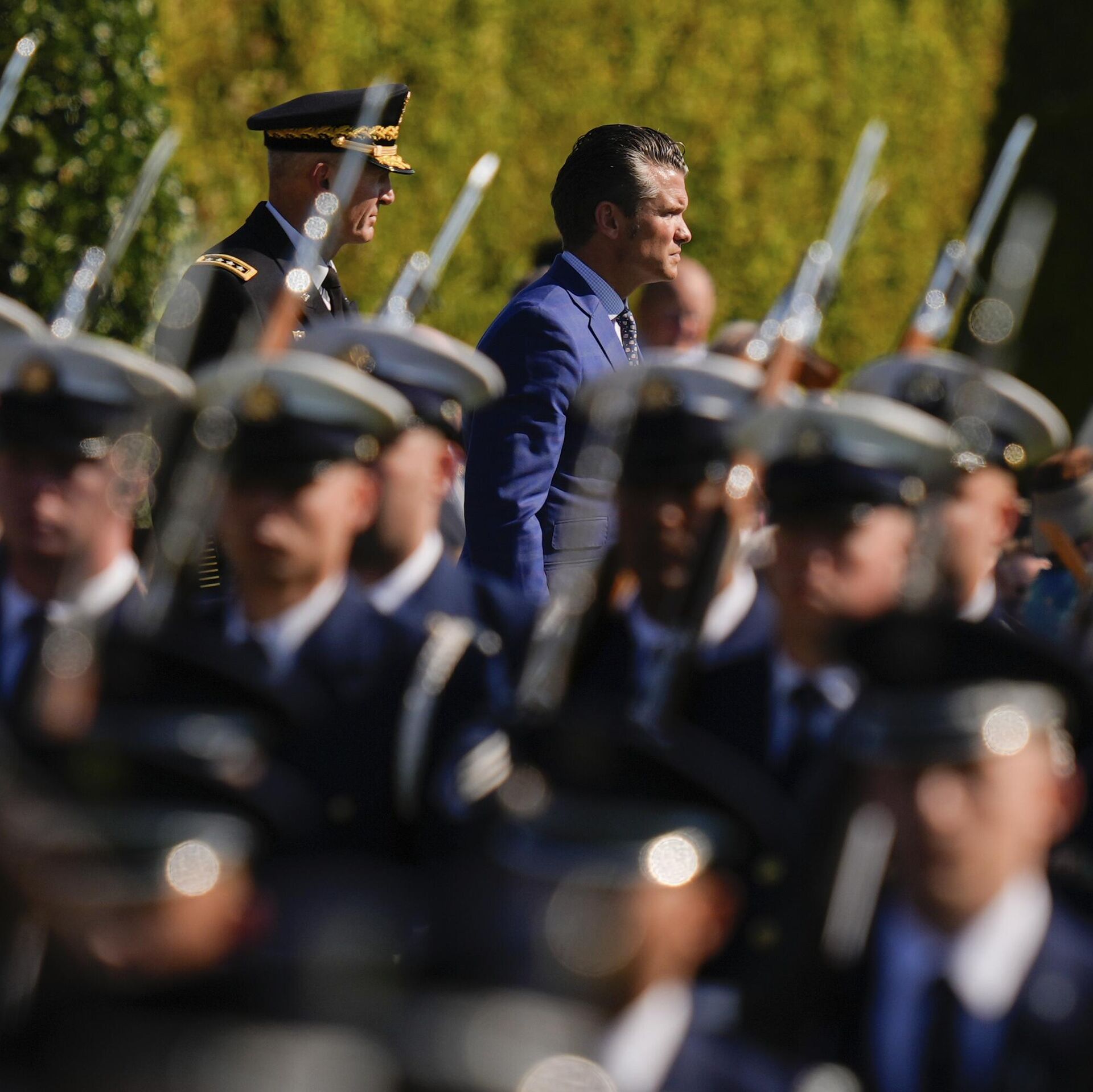 Генерал Ренди Џорџ и Пит Хегсет на паради војске САД у Пентагону - Sputnik Србија, 1920, 01.10.2025