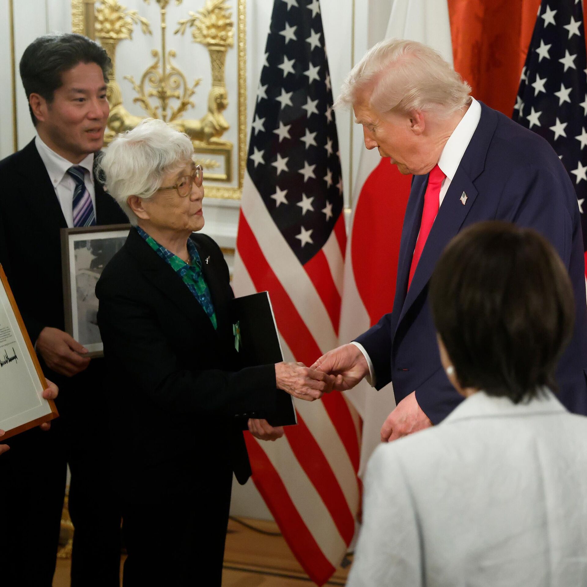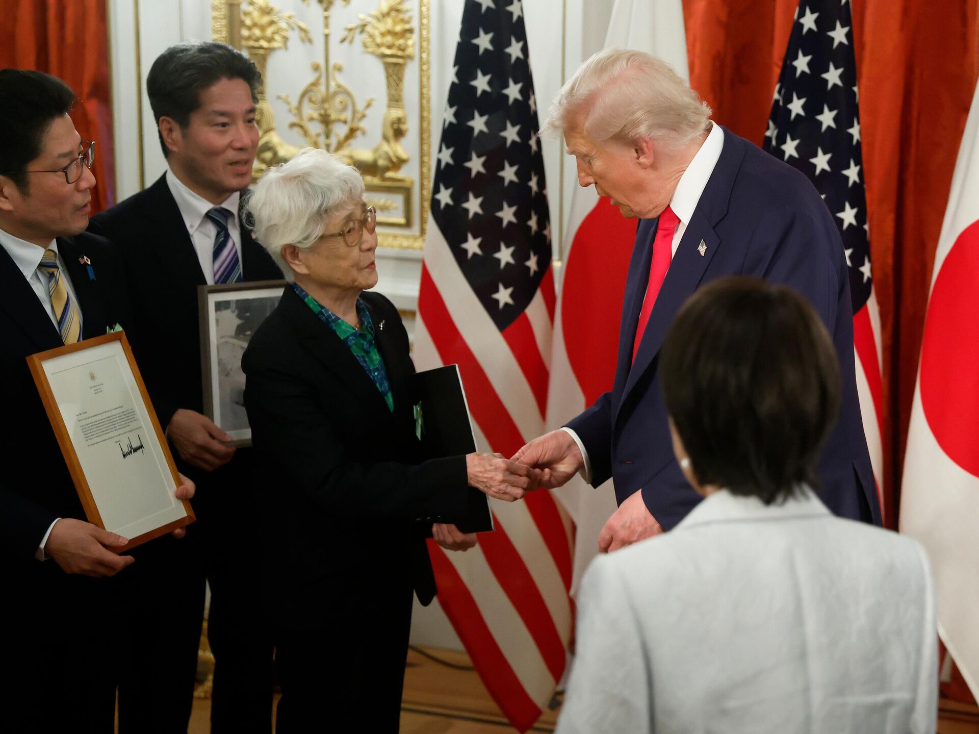 На састанку у палати Акасака, Трампу је уручена палица за голф која је припадала покојном премијеру Шинзу Абеу, симболично подсећање на лично пријатељство двојице лидера, истичу медији.