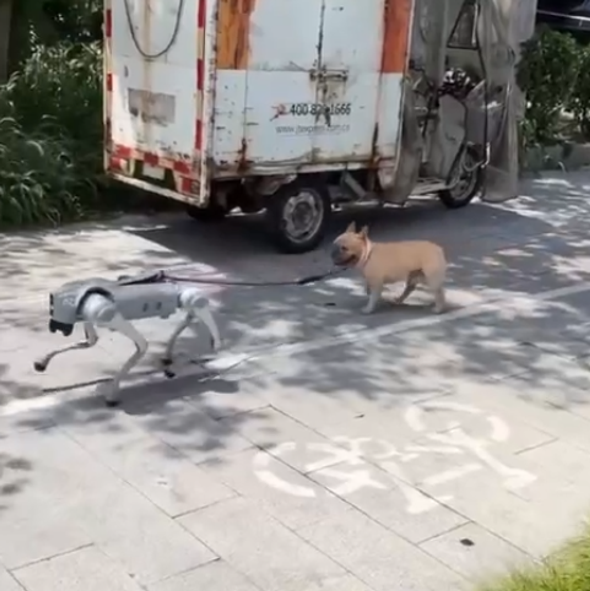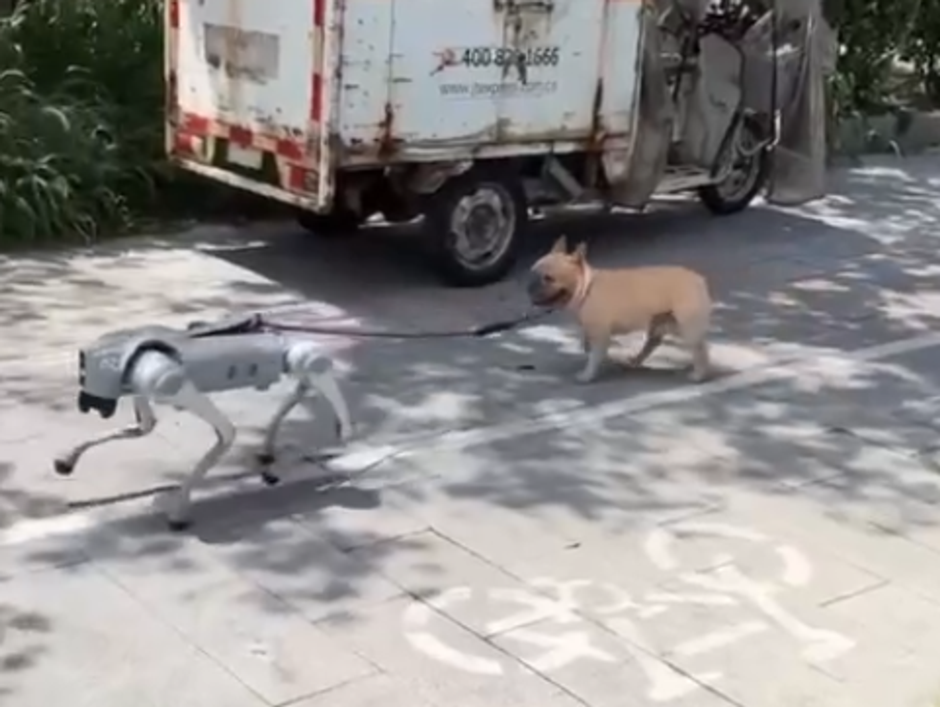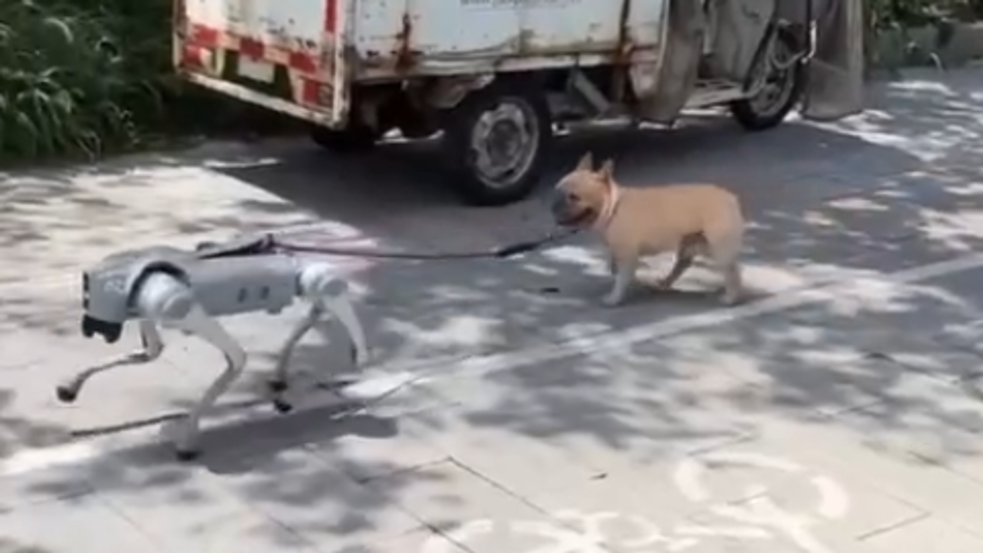 И љубимци у Кини, судећи према снимку објављеном на друштвеним мрежама, иду у корак са технологијом. Погледајте како изгледа када пас изађе у шетњу са роботом.