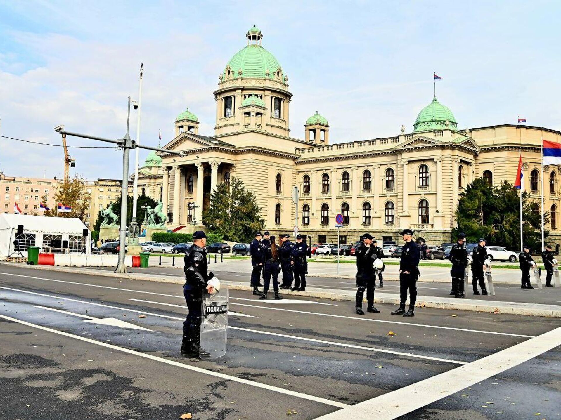 На платоу испред Скупштине Србије распоређени су припадници полиције.