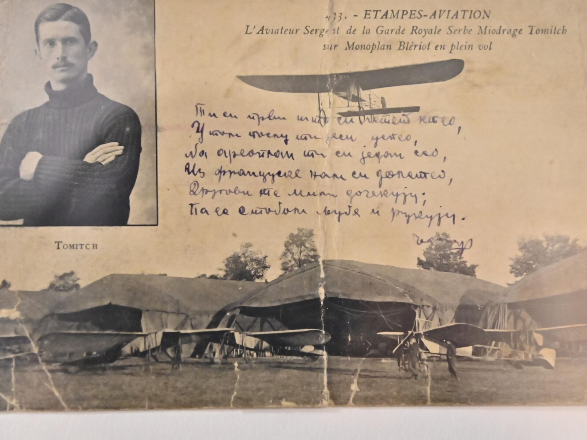 Посетиоци могу видети, између осталог, писмо српског пилота на фронту код Једрена 1912. са сликом авиона Блерио, из исте године разгледница Војислава Новичића са двокрилцем Фарман или писмо Александра Дерока упућено из Солуна.