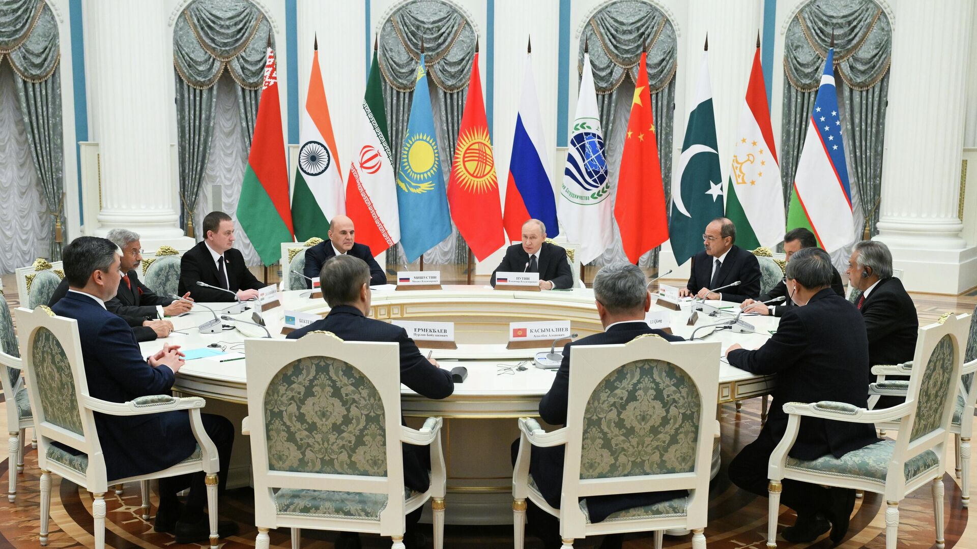 „Наравно, сарадња у оквиру ШОС-а није ни близу ограничена само на економију, иако је то несумњиво најважнији аспект. Наша организација такође доприноси јачању мира и стабилности на евроазијском простору, супротстављању најразличитијим изазовима и претњама и обликовању нове, уравнотежене безбедносне архитектуре у Евроазији“, рекао је Путин на састанку са шефовима делегација савета премијера држава-чланица ШОС-а.