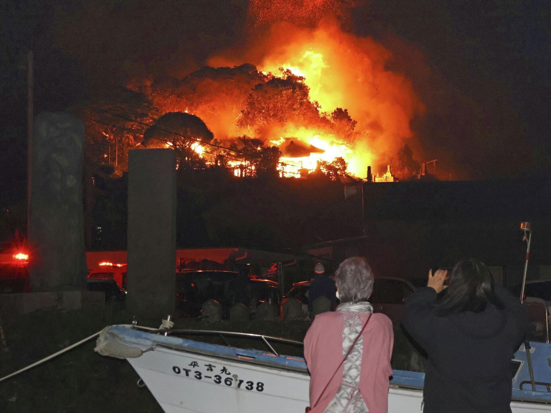 Високи званичник префектуре Шого Фуџикава изјавио је да се дим смањује и да би пожар ускоро требало да буде стављен под контролу, али је упозорио да је рано за коначне процене.