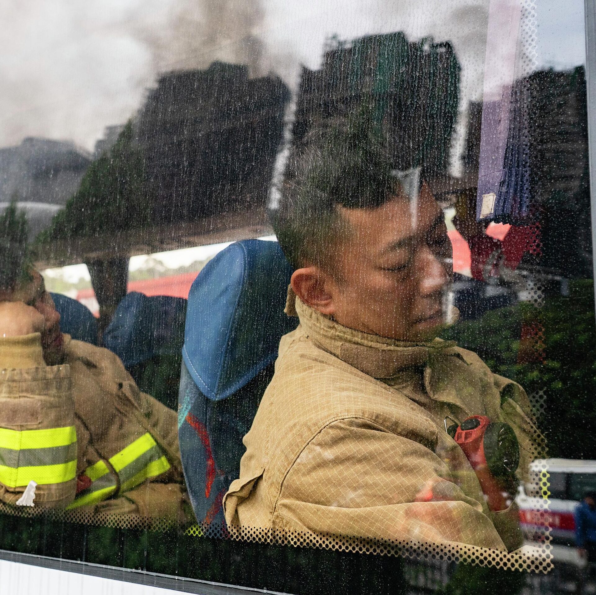 Исцрпљени ватрогасци одмарају док се не врате на позицију. - Sputnik Србија