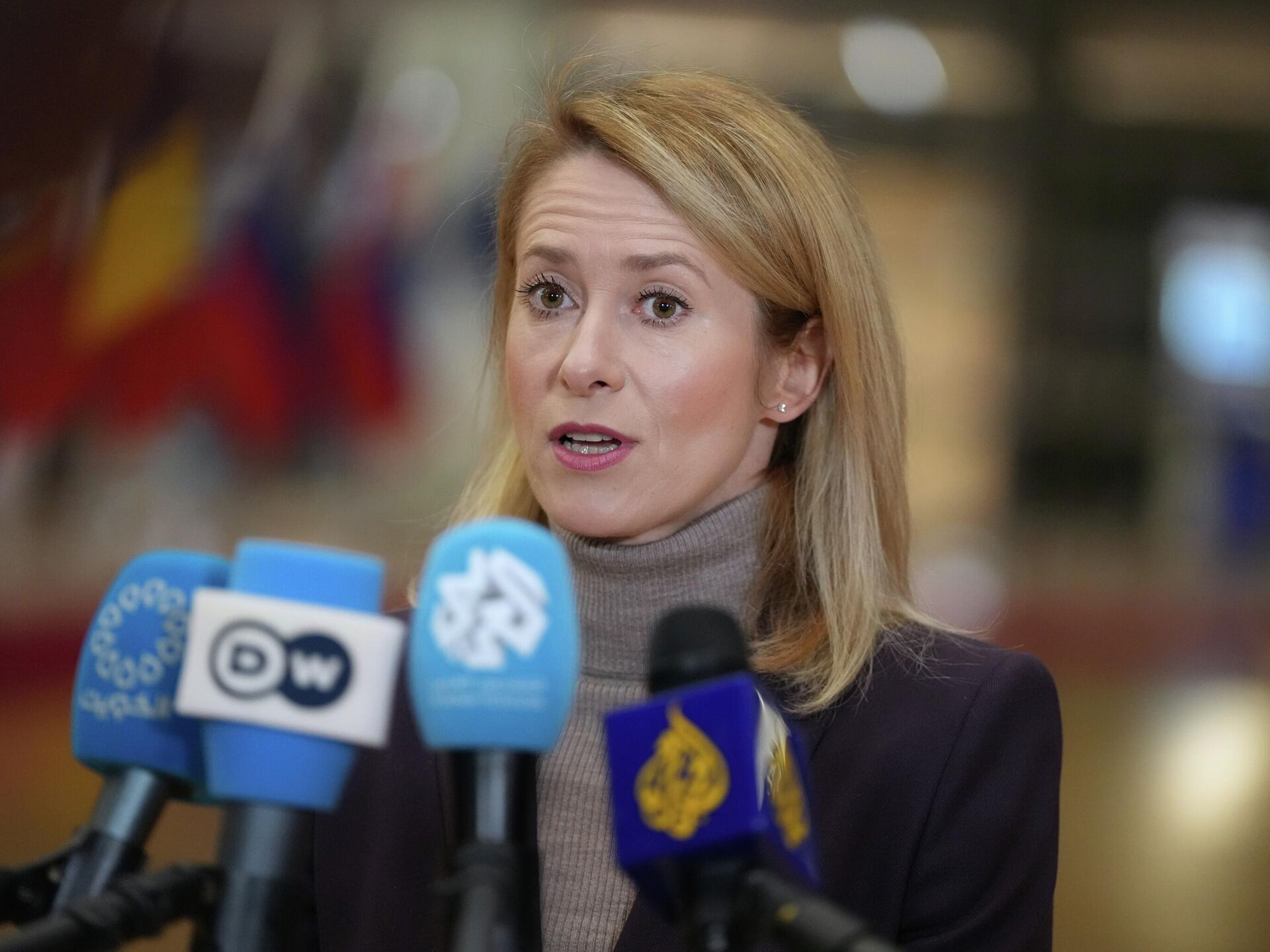 Говорећи о безбедносним гаранцијама за Украјину, Каласова је напоменула да ЕУ треба да размотри реалне безбедносне гаранције за Украјину у замену за њено чланство у НАТО-у, „ако се о њему више не разматра“.