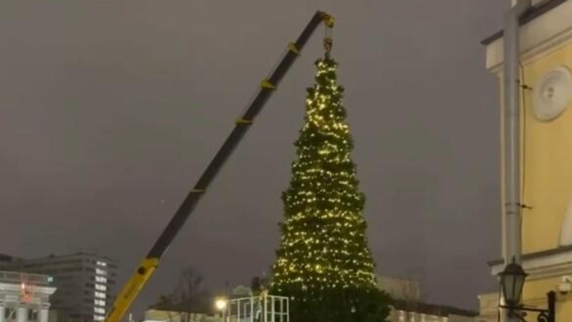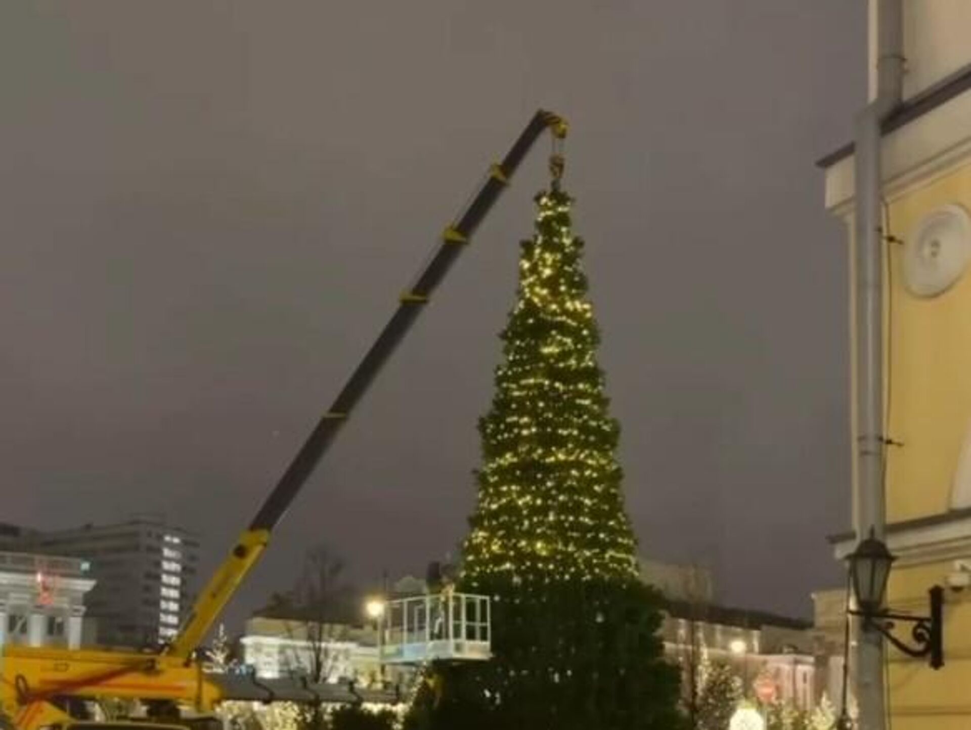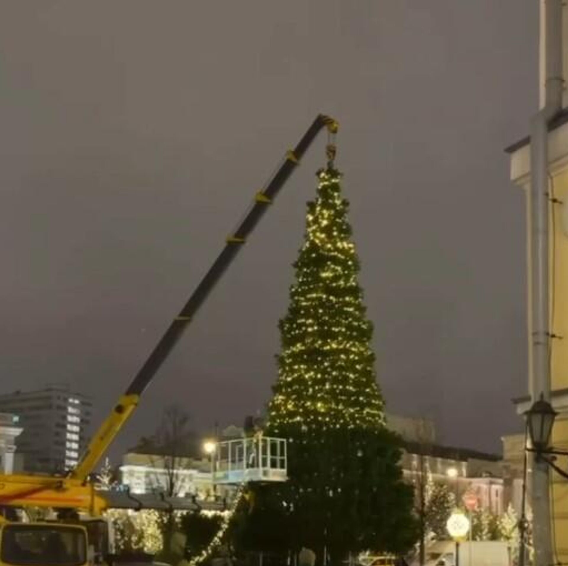 У сусрет празнцима у Москви се помоћу крана украшава огромна јелка. 18.12.2025, Sputnik Србија