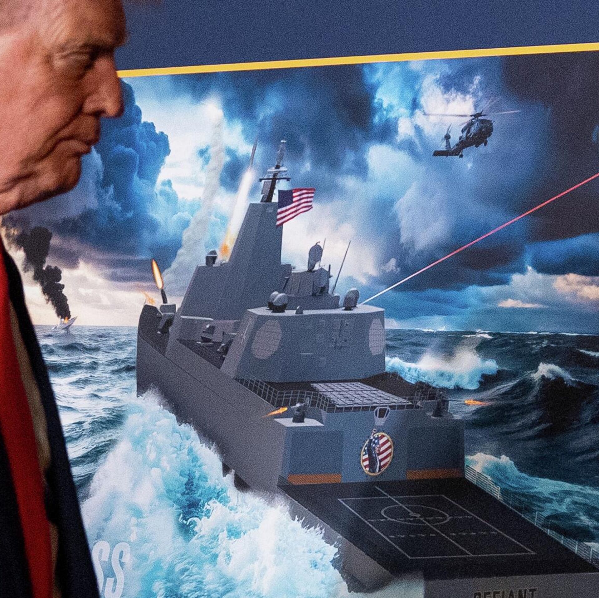 „Будући бојни брод класе Трамп, У.С.С. Дефајант, биће највећи, најсмртоноснији, најприлагодљивији и и најлепши ратни брод било где на океанима“, рекао је Фелан описавши градњу „генерацијском инвестицијом“ уз поруку да ће „учинити морнарицу поново великом“.