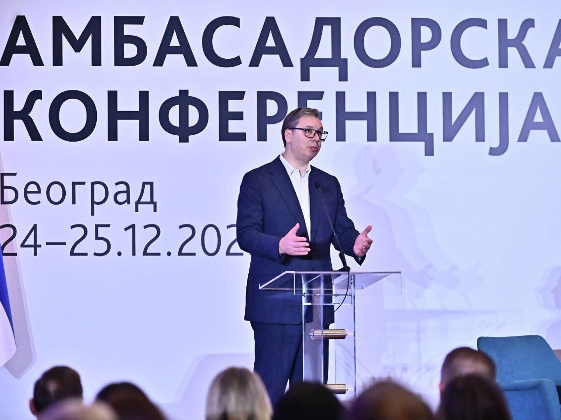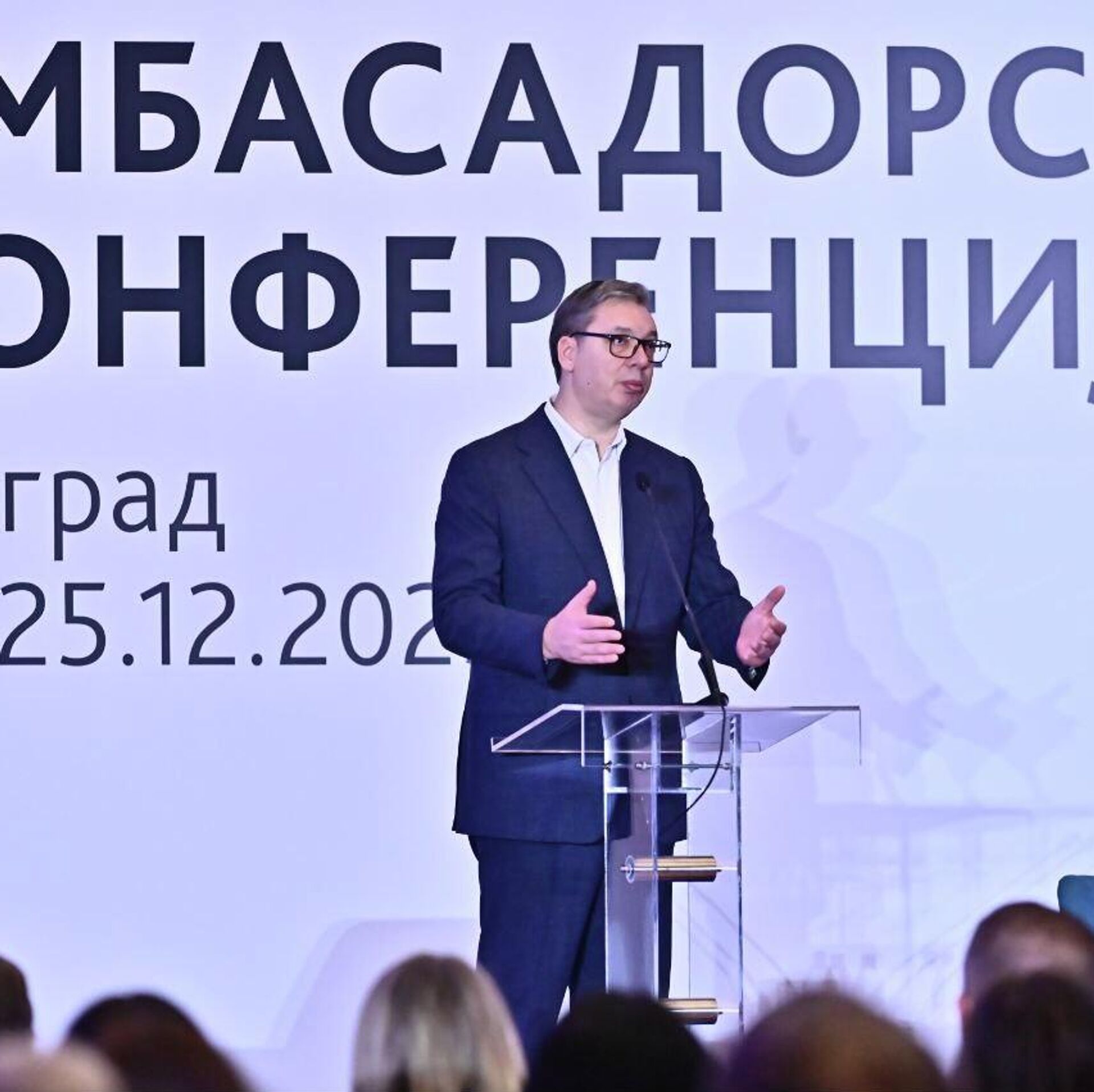 Председник Србије Александар Вучић се обраћа на Амбасадорској конференцији у Београду. - Sputnik Србија, 1920, 24.12.2025