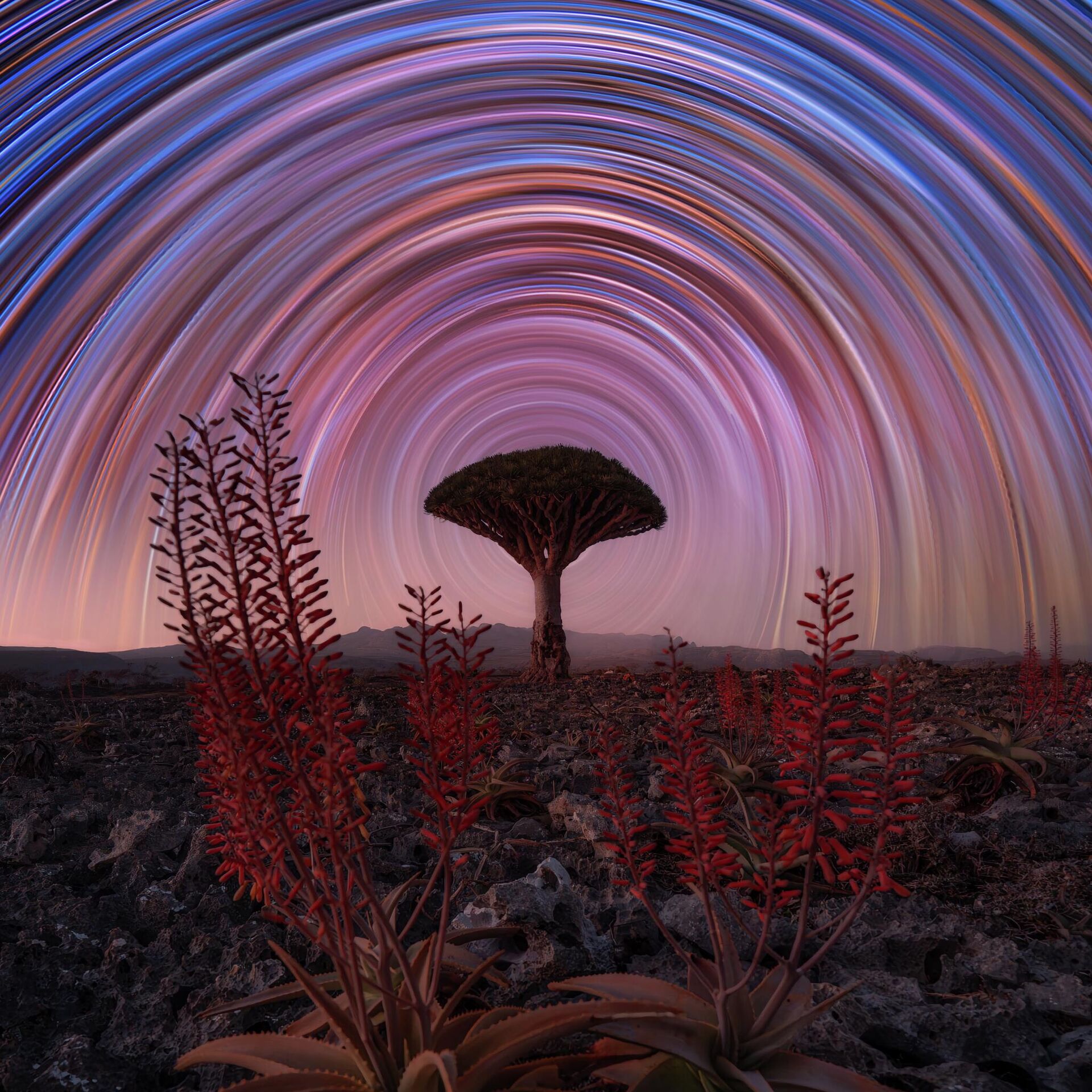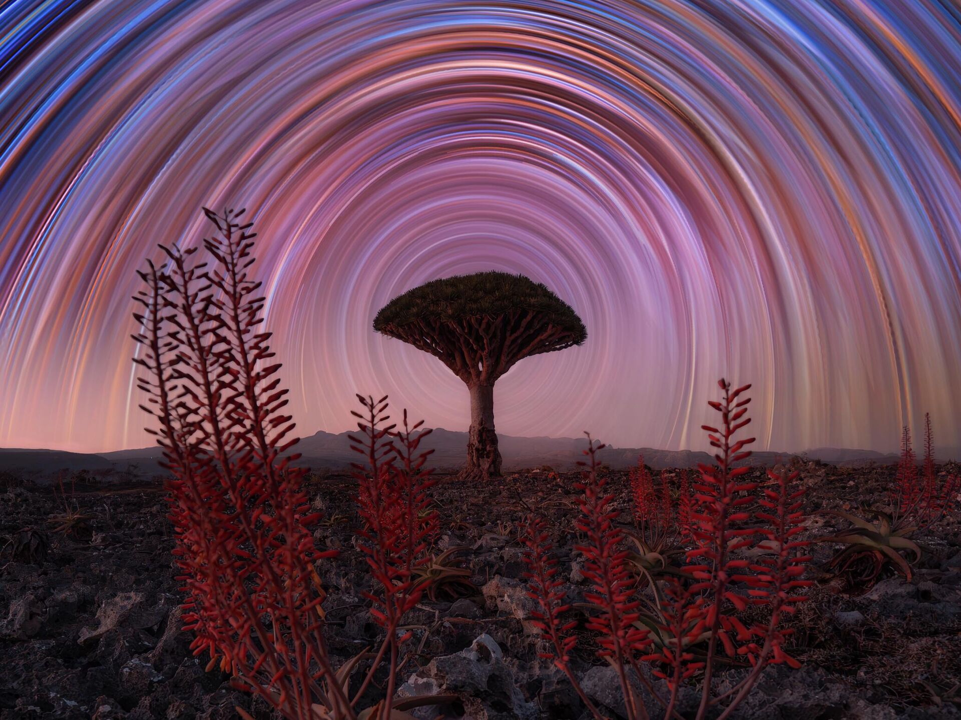 Финалиста Бенџамин Баракат из Швајцарске освојио је жири фотографијом "Алое вера и змајево дрво са звезданим траговима". - Sputnik Србија