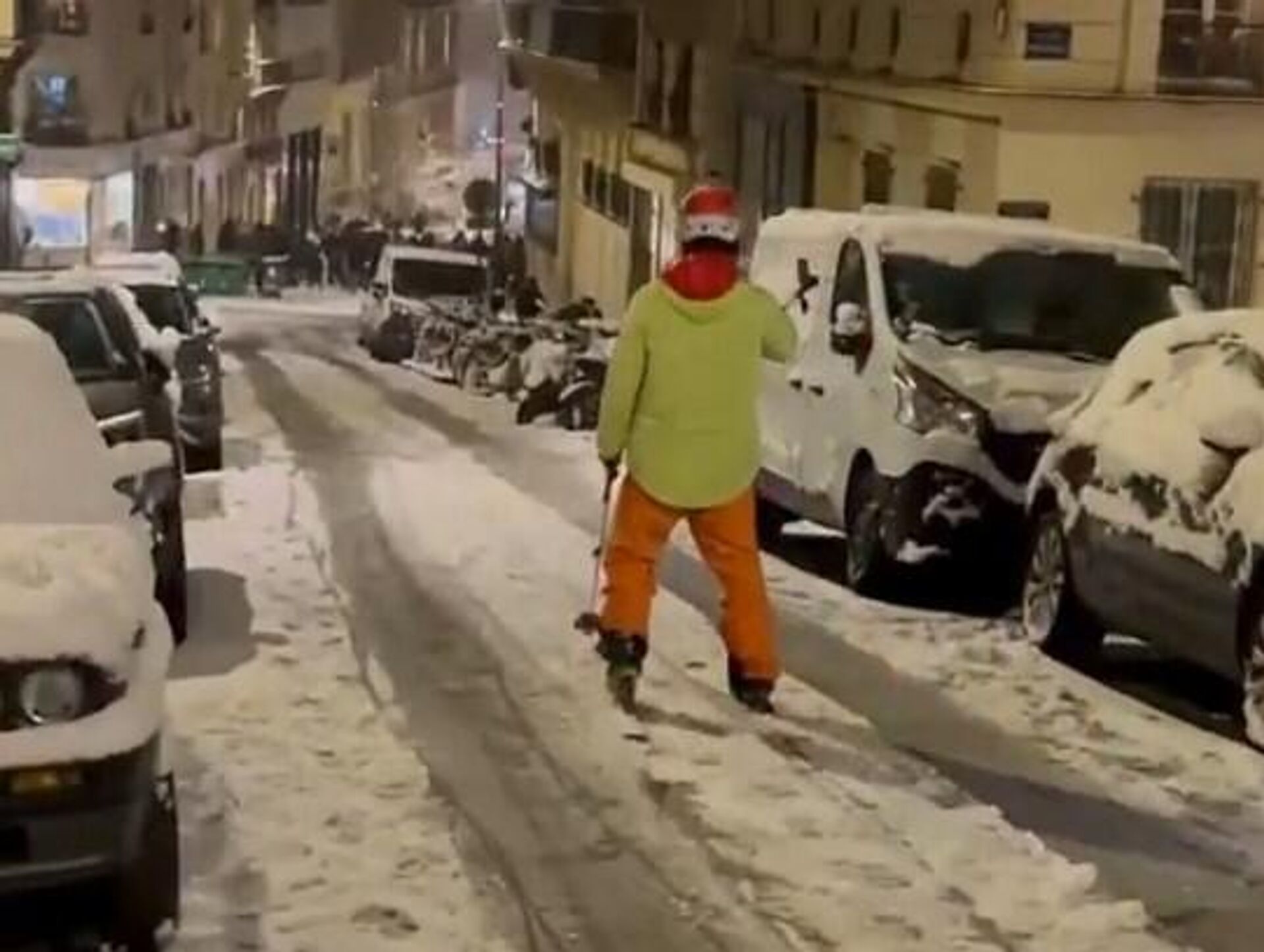 Неколико центиметара снега парализовало је трећину Француске. Превоз камионима и школски превоз су обустављени, а забележено је и кашњења летова. Један грађанин смислио је, међутим, иновативни начин кретања залеђеним улицама главног града.