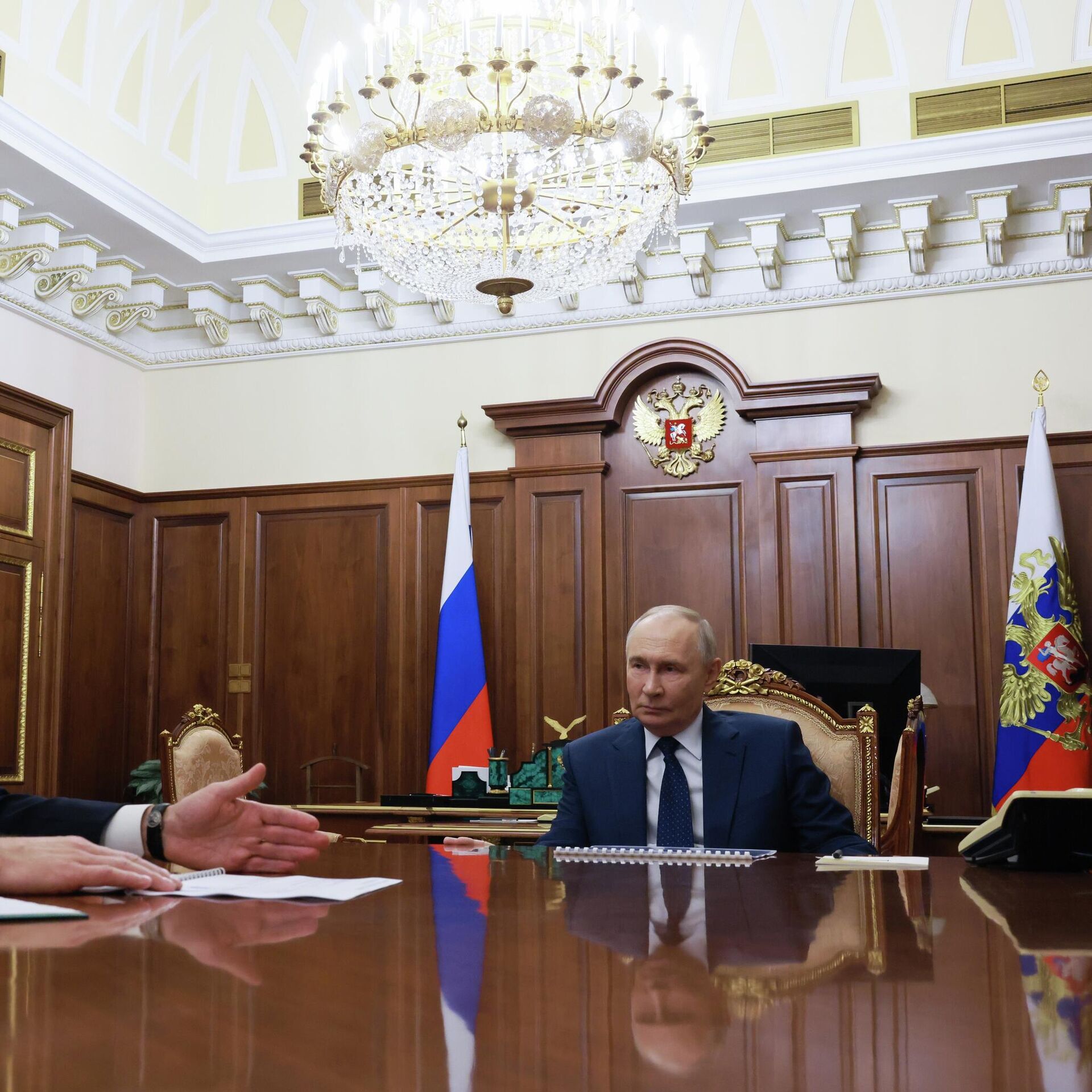 © POOL / Уђи у базу фотографијаПредседник Русије Владимир Путин и први вицепремијер Денис Мантуров