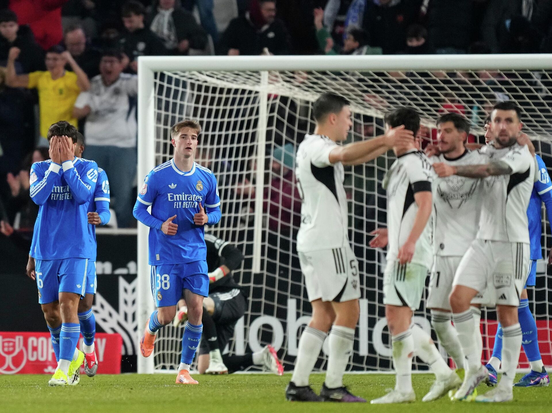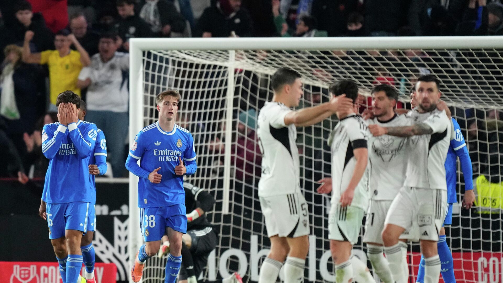Арбелоа је у понедељак на клупи наследио некадашњег саиграча из Реала Ћабија Алонса, али је већ на дебију доживео тежак ударац. Седамнаестопласирани клуб из Сегунде је против Мадриђана повео у 42. минуту, стрелац је био Хави Виљар. Франко Мастантуоно је изједначио у 45. минуту. Хефте Бетанкор је дао гол у 82. минуту за ново вођство Албасетеа, а Гонсало Гарсија је поравнао на 2:2 у 90+1. минуту. Деловало је тад да ће меч у продужетак, али је Бетанкор другим голом на мечу поставио коначних 3:2 и донео велику победу клубу који од 2005. није играо у шпанској елити. Осмина финала Купа краља: Албасете - Реал 3:2, Алавес - Рајо Ваљекано 2:0, Бетис - Елче 2:1. Јуче: Реал Сосиједад - Осасуна - пеналима 4:3 (2:2), Депортиво - Атлетико Мадрид 0:1, Културал Леонеса - Атлетик Билбао 3:4 - после продужетка. Сутра: Бургос - Валенсија, Расинг Сантандер - Барселона.
