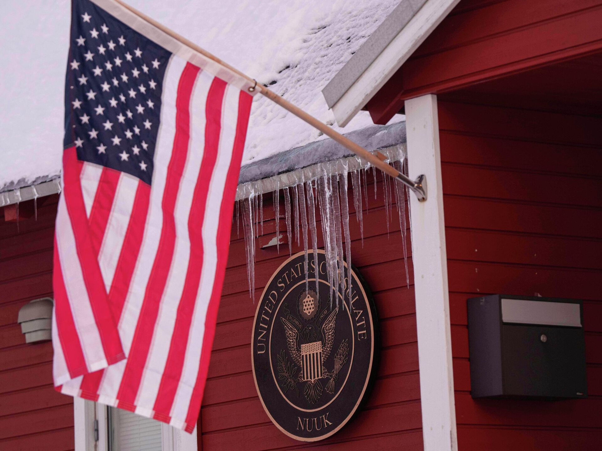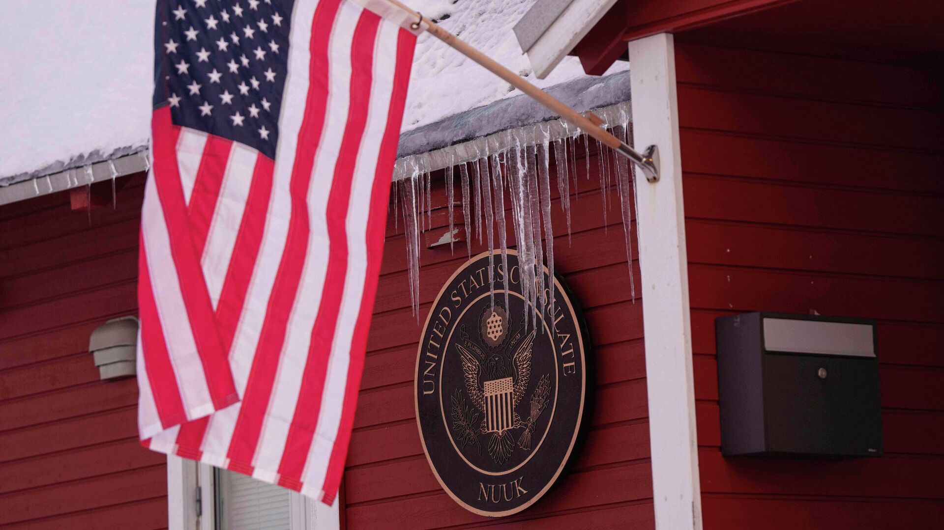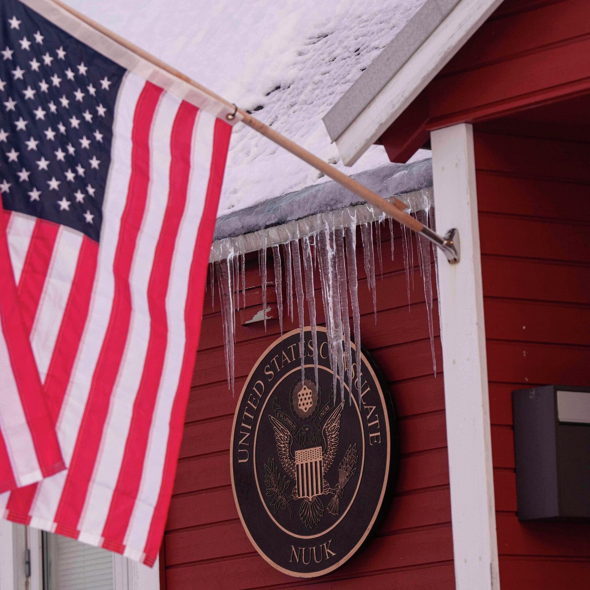 Америчка застава на згради конзулата САД у Нууку на Гренланду - Sputnik Србија, 1920, 15.01.2026