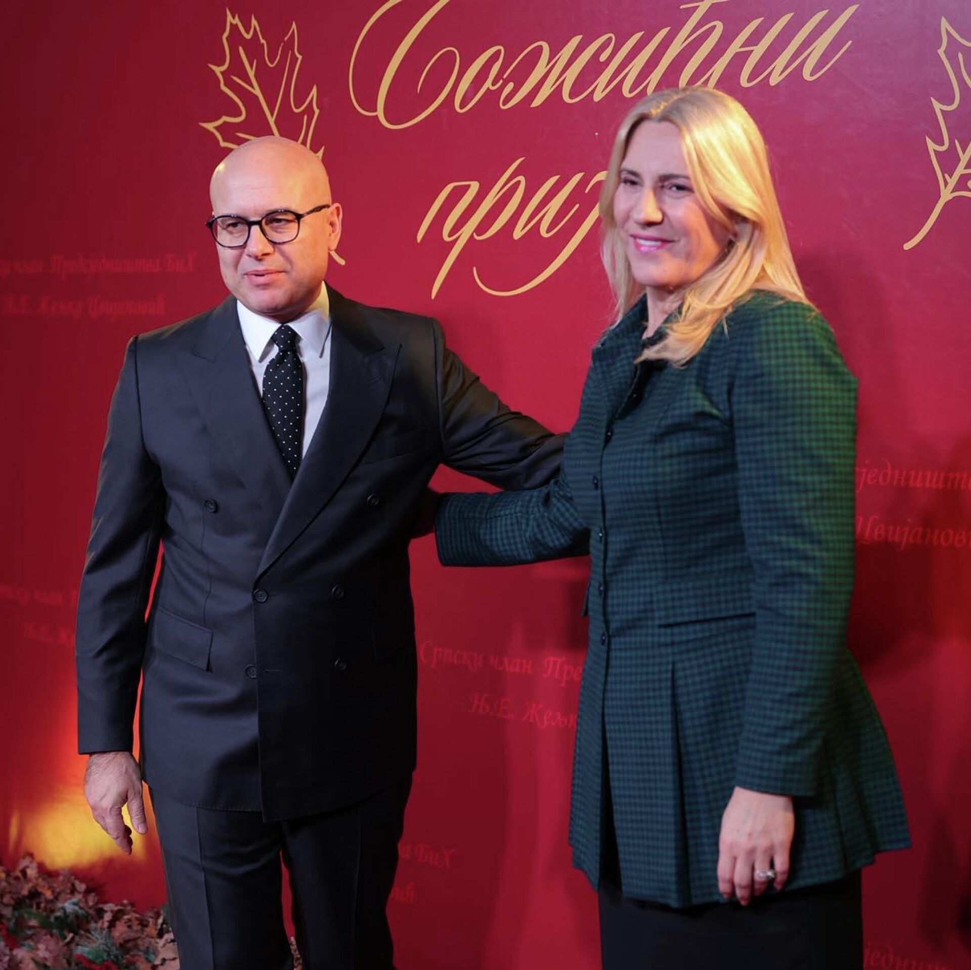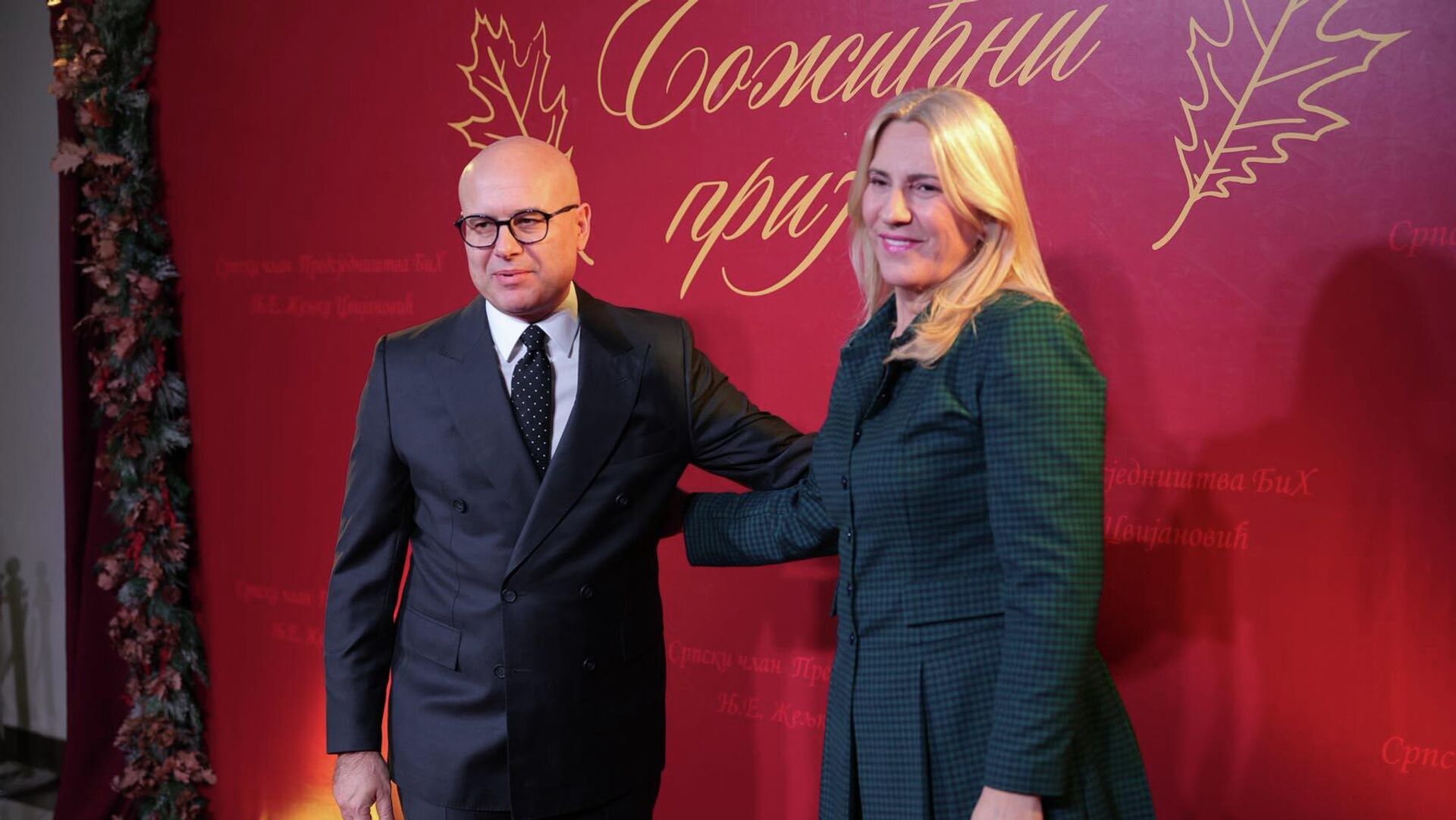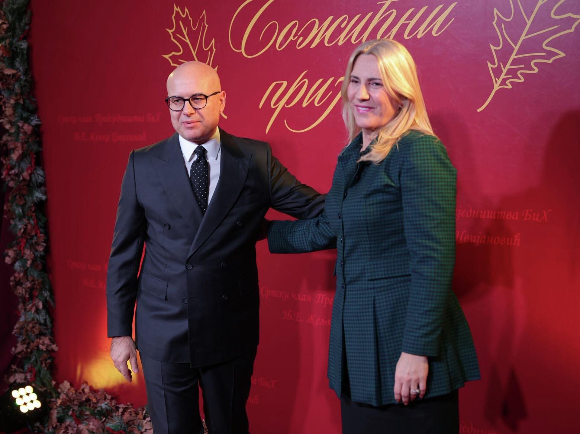 © Tanjug / FOTO SRNAМилош Вучевић и Жељка Цвијановић на Божићном пријему у Источном Сарајеву.