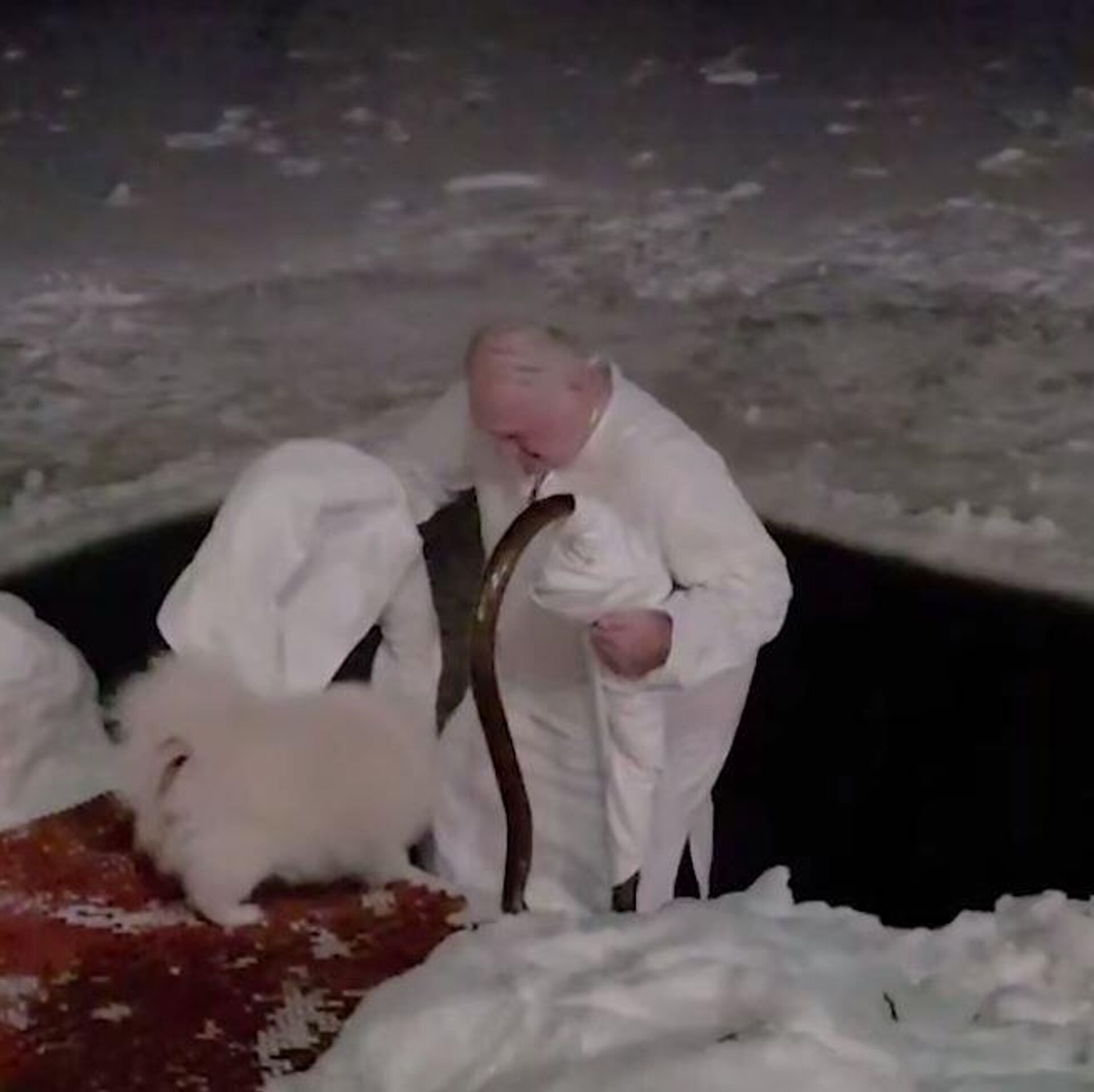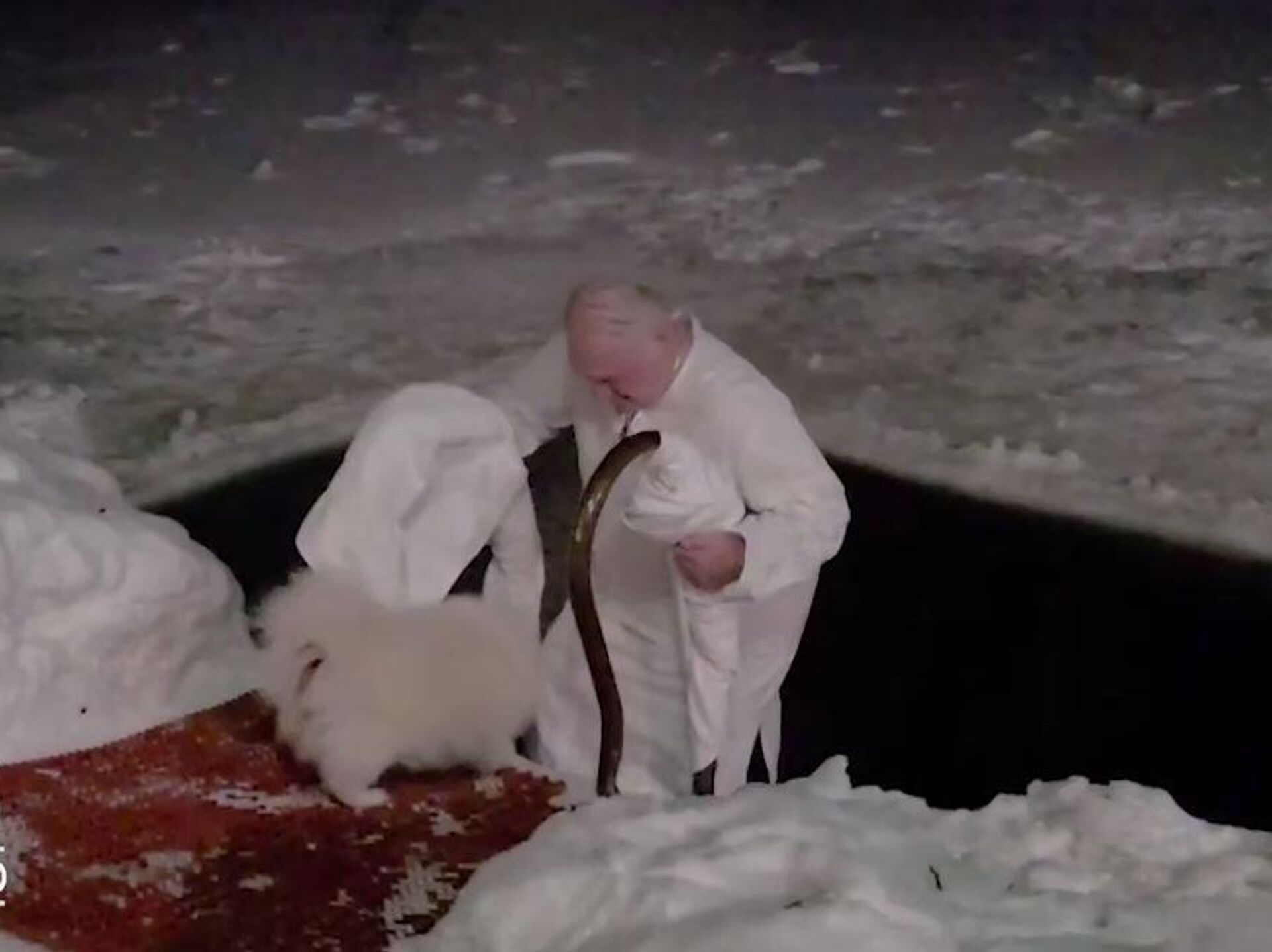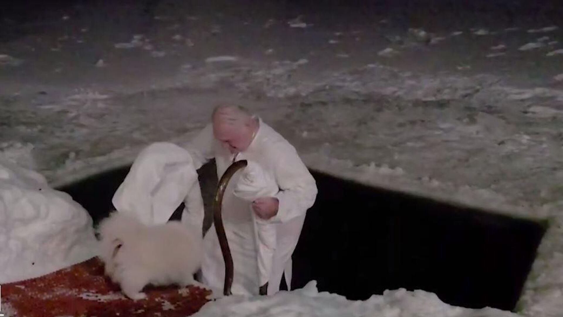 „Традиција Првог – зарањање у ледену воду“, објавио је Телеграм канал Пул првог, напомињући да је температура ваздуха у том тренутку била минус 15 степени Целзијуса.