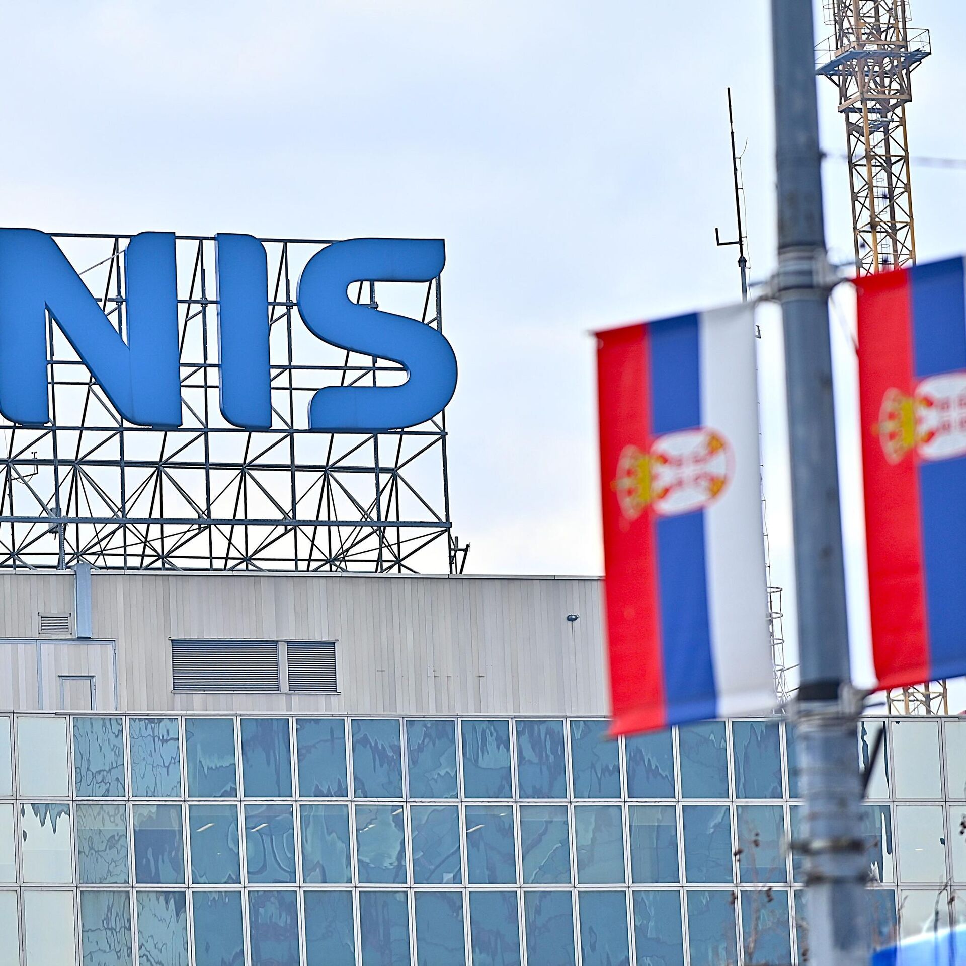 Заставе Србије испред пословне зграде НИС-а - Sputnik Србија, 1920, 19.01.2026