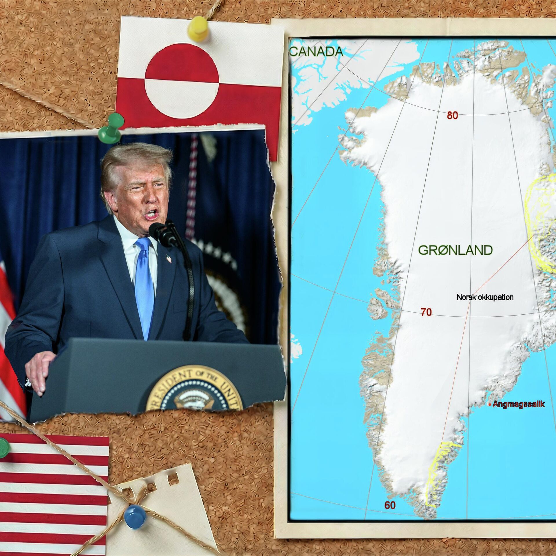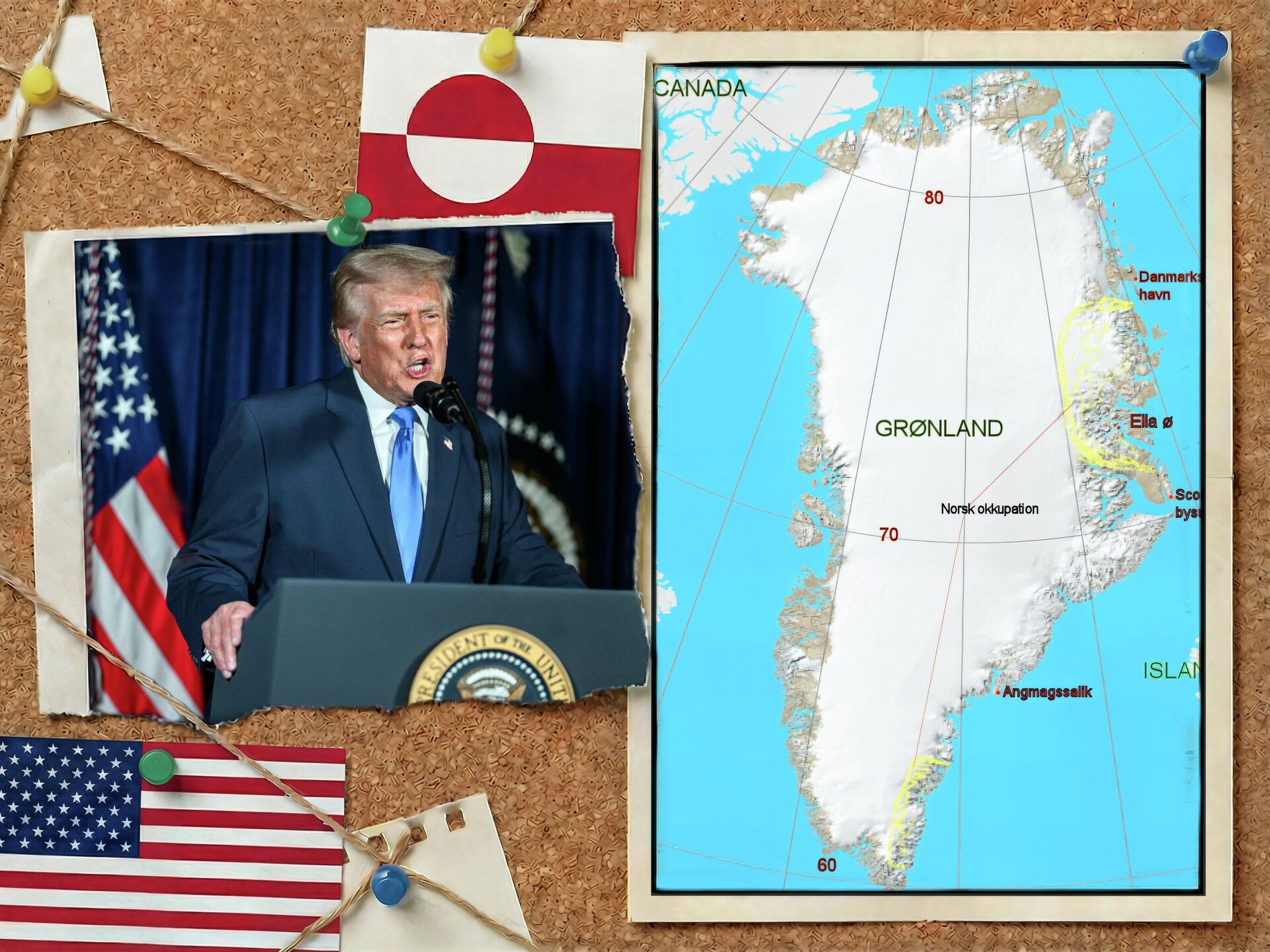 © Фото : Official White House/Daniel Torok//CC BY-SA 3.0/Ingmar dawikiПрезидент США Дональд Трамп и карта Гренландии