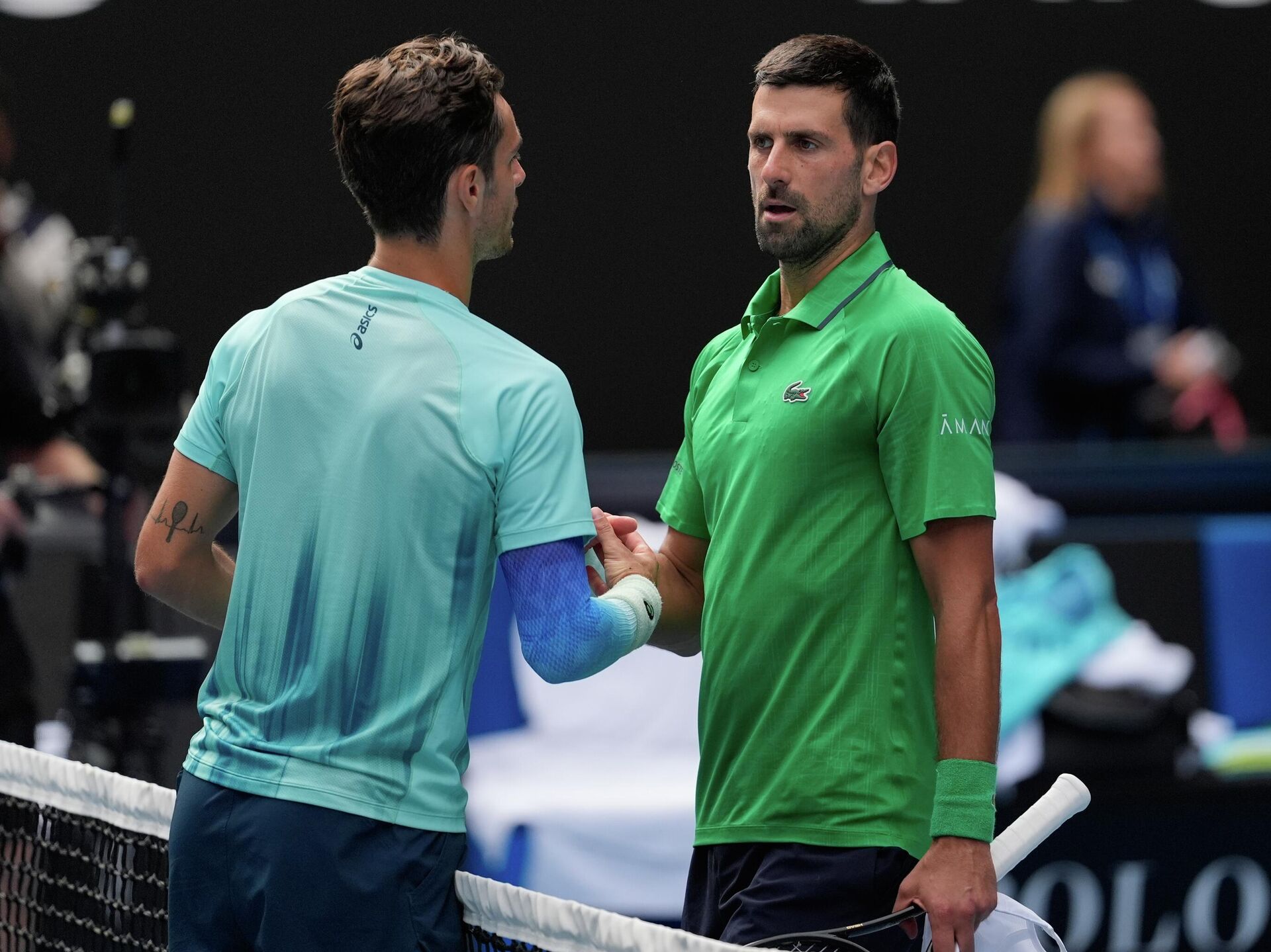 Новак Ђоковић био је на само сет од пораза у четвртфиналу Аустралијан опена, али је његов противник Лоренцо Мусети доживео повреду због које је морао да преда меч у трећем сету после чега је српски ас искрено поручио да је Италијан требало да победи.