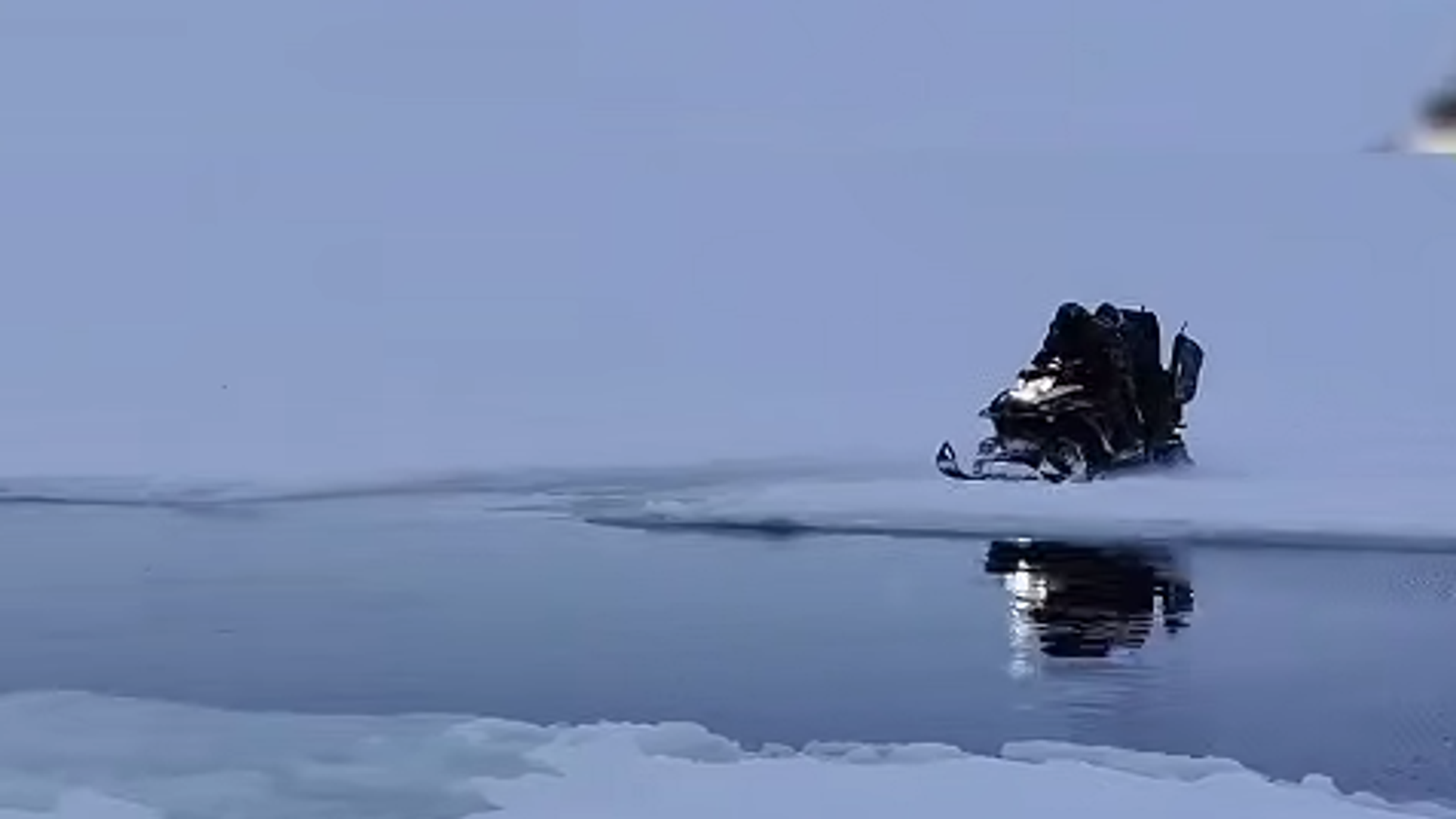 На Сахалину су риболовци на моторним санкама прескакали велику пукотину у леду како би се спасли са одвојене ледене санте.