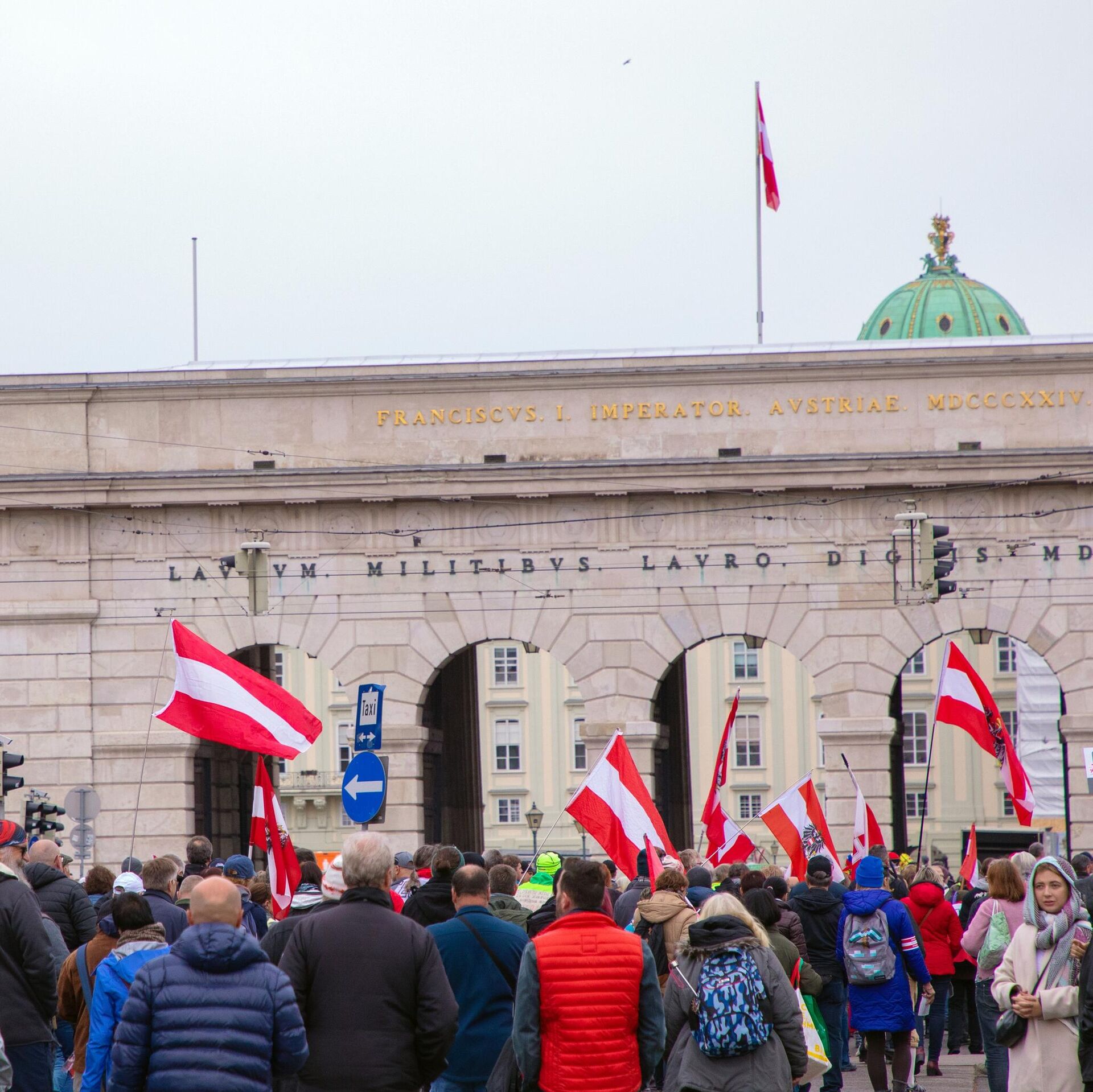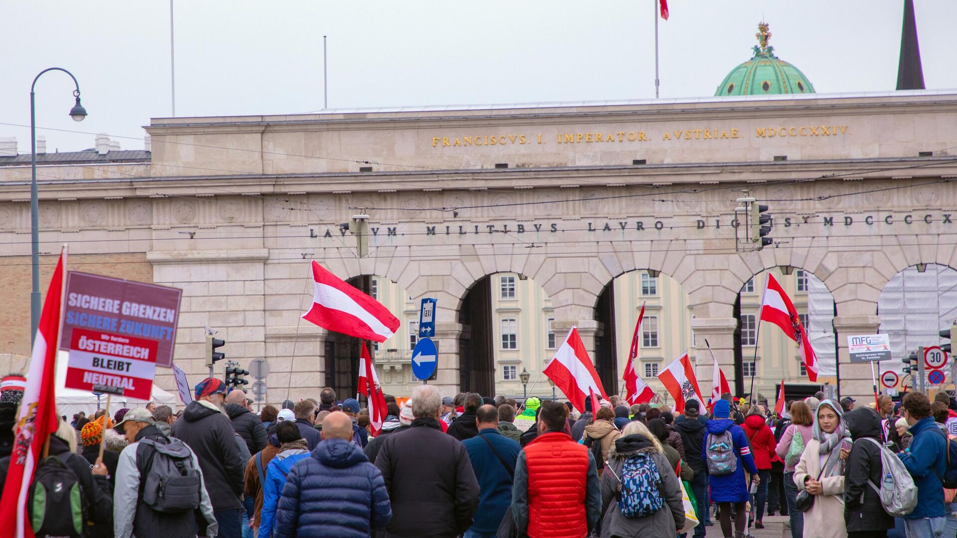 Демонстранти су марширали центром Беча носећи аустријске заставе и транспарент са натписом „Да — неутралности и миру, не — НАТО-у“. Учесници су такође носили транспаренте са позивима на постизање мира, без оружја и ударали у бубњеве.