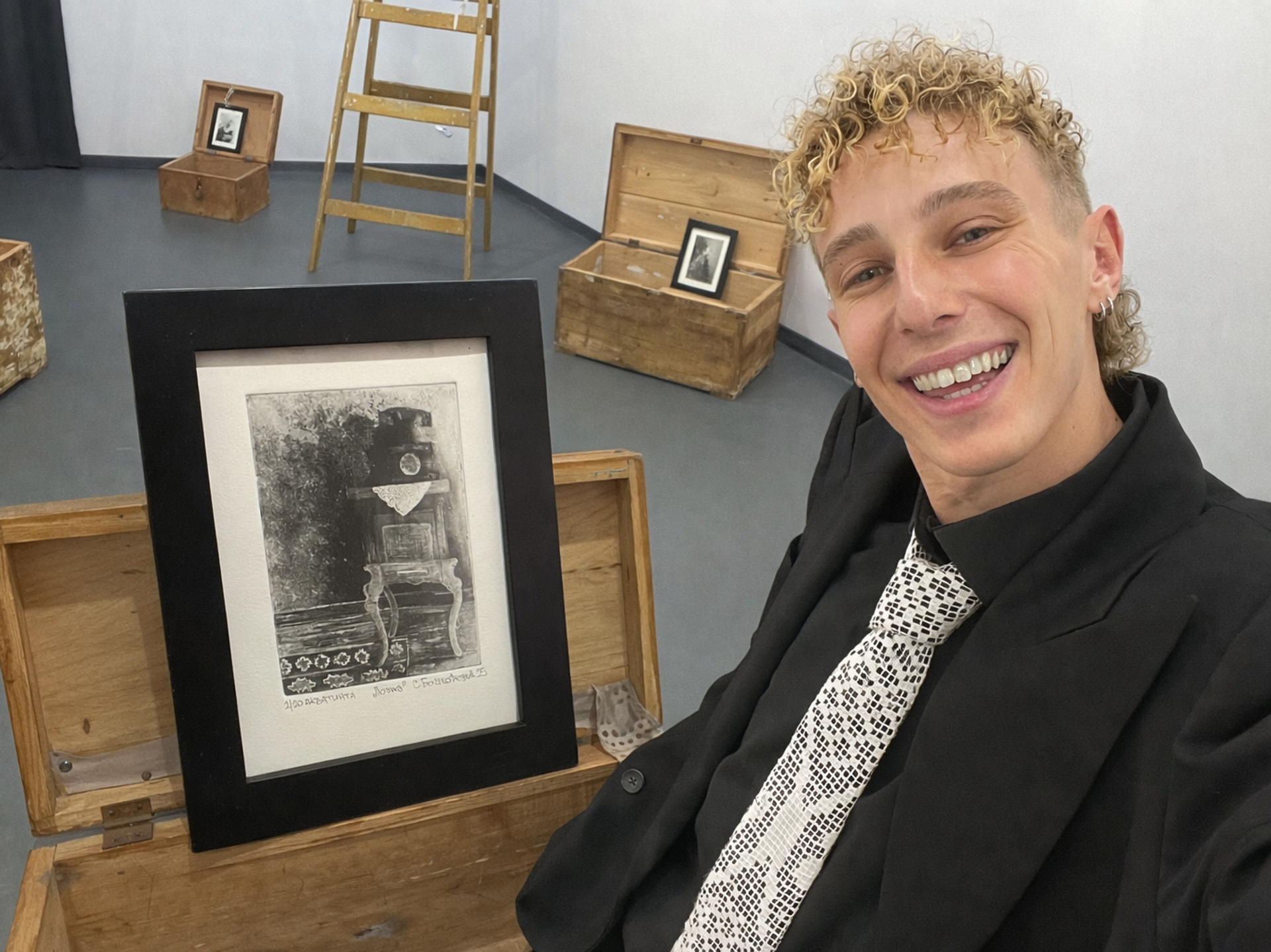 Прва самостална изложба „Таван“ - кроз графике породичних фотографија, старих предмета, бавио сам се темом дома, сећања и одрастања