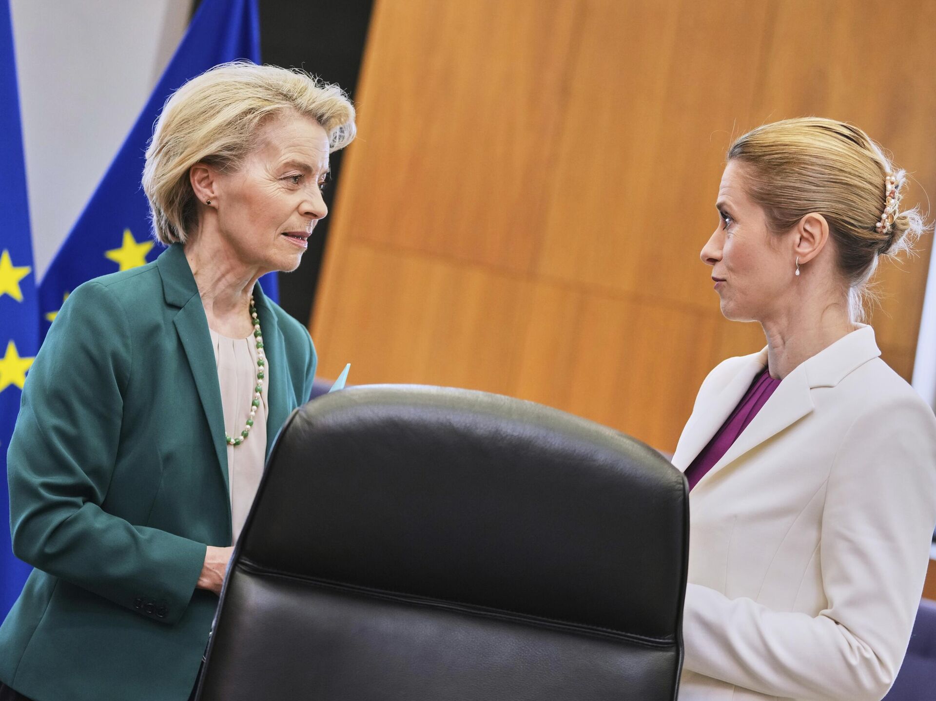© AP Photo / Virginia MayoПредседатель Европейской комиссии Урсула фон дер Ляйен беседует с главой внешнеполитического ведомства Европейского союза Кайей Каллас