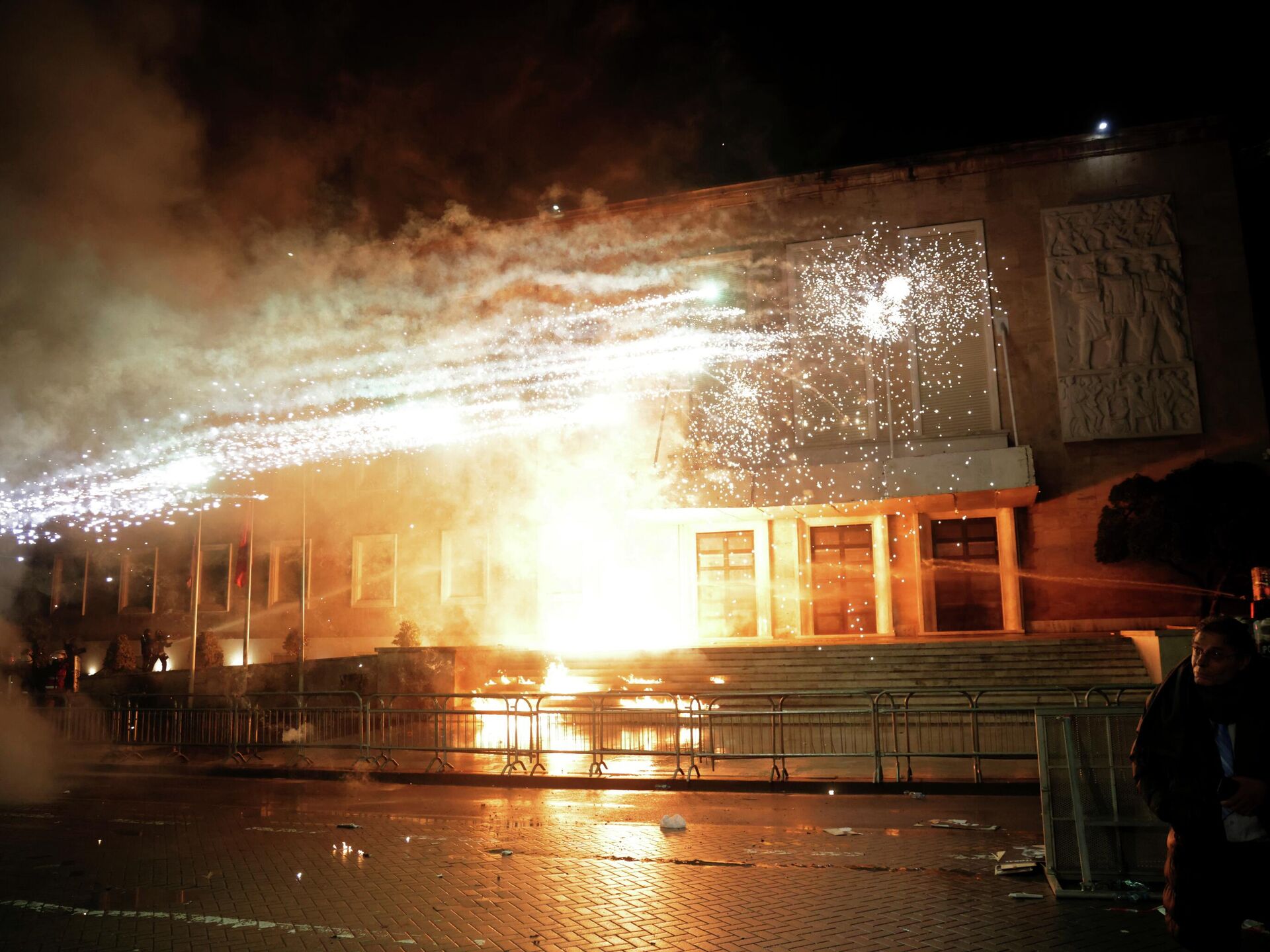 Демонстранти су се, преноси „Јуроњуз Албанија“, најпре окупили испред зграде Владе, где су, након обраћања председника Демократске партије Саљија Берише, поједини учесници бацали молотовљеве коктеле и ватромет ка објекту.