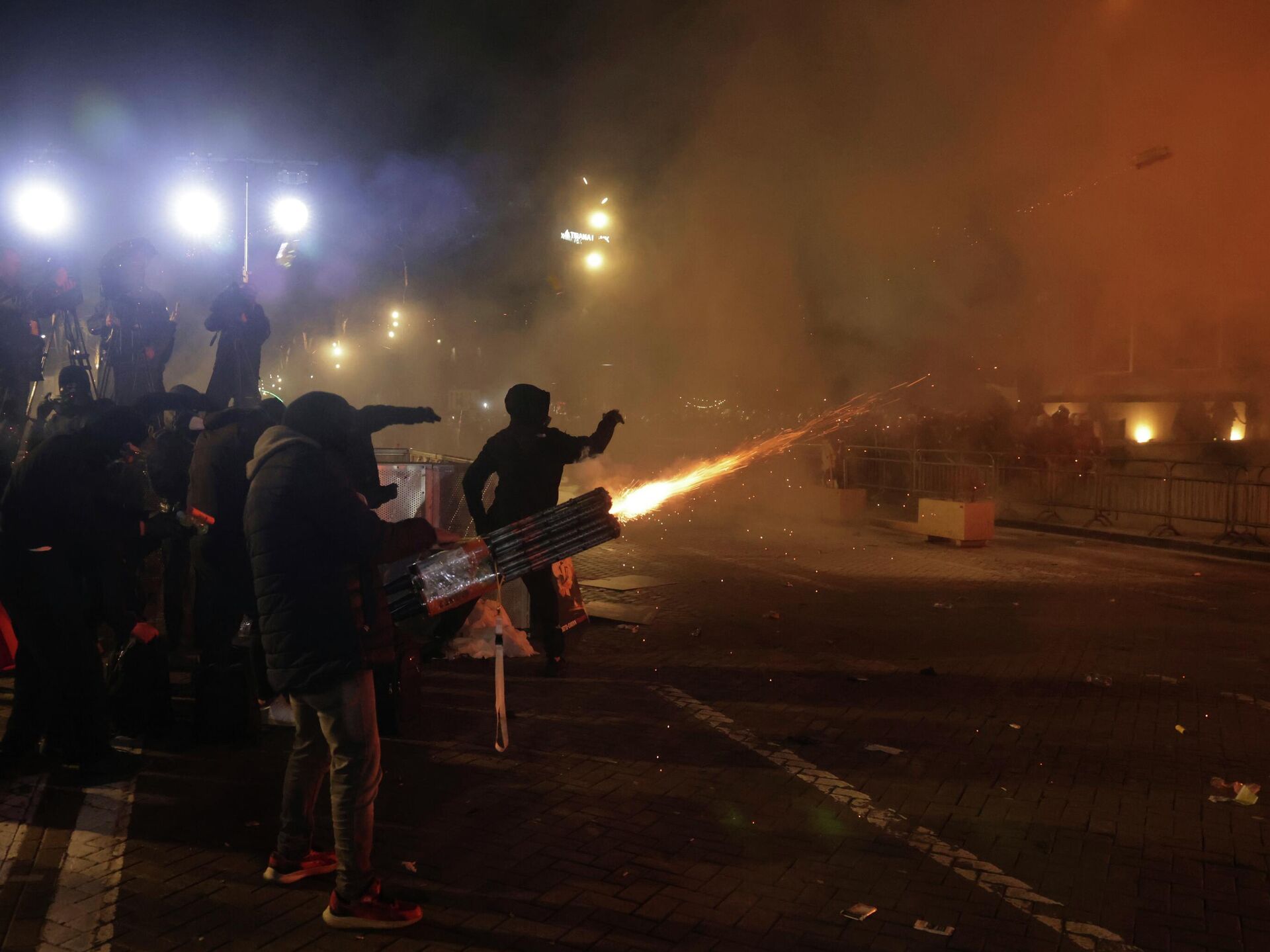 Демонстранти су потом кренули ка парламенту, где су почели да бацају Молотовљеве коктеле и на зграду и на полицајце, а пламен је захватио и један аутомобил.