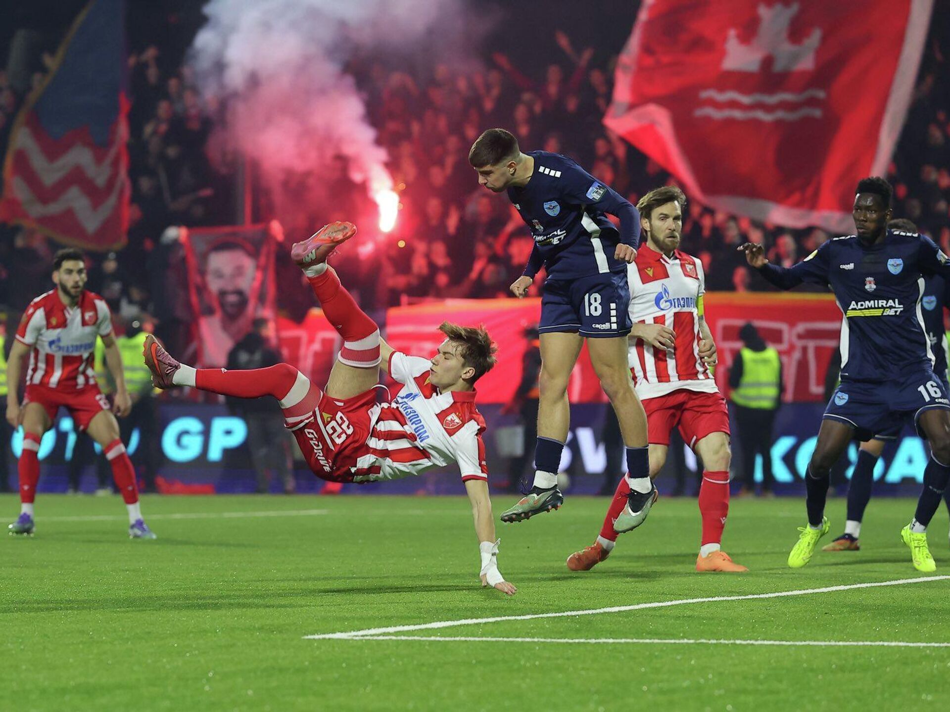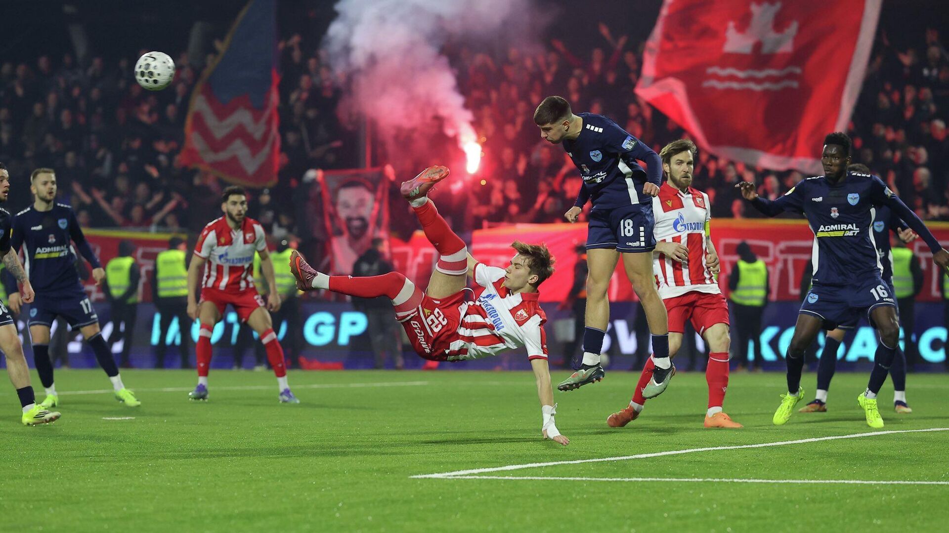 Црвено-бели нису имали проблема да оправдају улогу фаворита, а до предности су дошли у 29. минуту када је Марко Арнаутовић затресао мрежу.