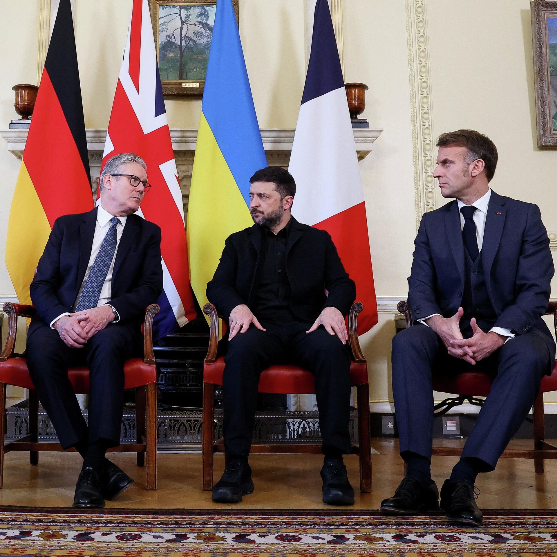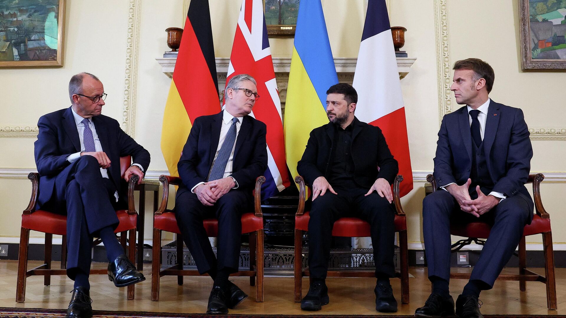 © AP Photo / Pool Photo/Toby MelvilleКанцлер Германии Фридрих Мерц, премьер-министр Великобритании Кир Стармер, президент Украины Владимир Зеленский и президент Франции Эммануэль Макрон