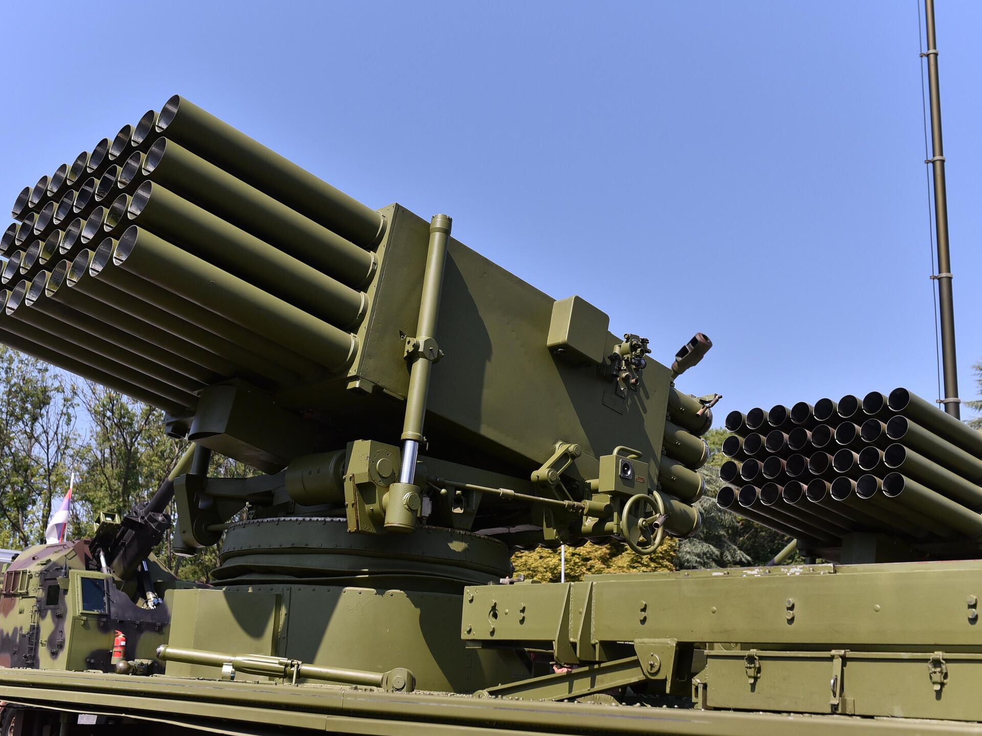 „Није то новина, али је сада занимљиво да је мање ометање када ракета лети према тенку или према неком оклопном циљу. Представљен је и наш познати систем вишецевног бацача ракета „Јерина 1“. То је систем који је развијала наша наменска индустрија и јако је добар. У питању је модуларни вишецевни бацач ракета калибра 400 и 122 милиметара који је добар и поуздан систем, а спада у категорију вишецевних бацачких ракета попут оних које има Русија, на пример, „град“ и „смерч“. „Град“ је калибра 122 милиметара, а „смерч“ 400 милиметара. А ово је модуларан тип, могу да се мењају системи на једном истом возилу и да се гађају циљеви који су од високог значаја - командна места, центри, логистички центри и тако даље,“ напомиње Пецић.